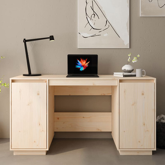 Marcel Solid Pine Wood Laptop Desk With 2 Door In Natural