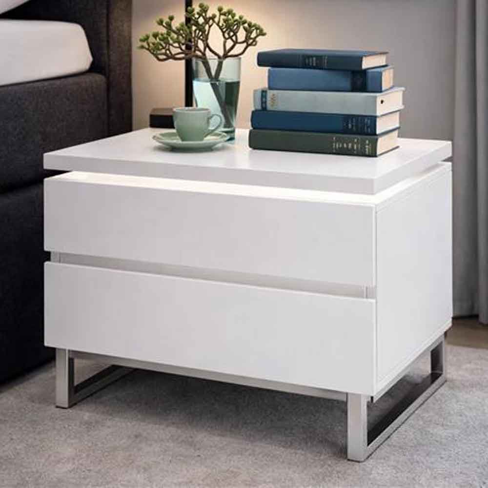 Matis Bedside Cabinet In White Gloss With 2 Drawers And Led