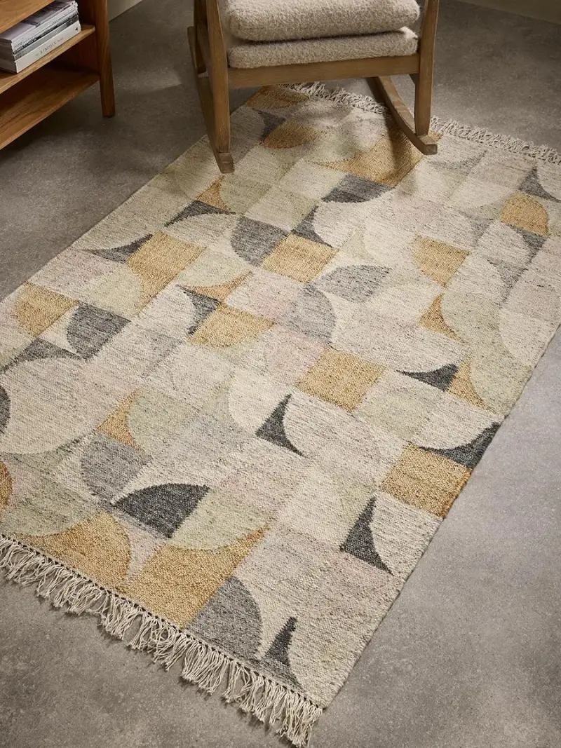 Introduce gentle pattern and warmth to your space with our Maudie Woven Rug. Crafted with a soft, earthy palette, its abstract geometric design brings subtle movement and character to any room, while the textured weave adds a natural, grounded feel underfoot. Finished with delicate fringed edges, it offers a relaxed, handcrafted touch that pairs beautifully with both modern and rustic interiors. Also available in a larger size. Click here to view our useful Rug Buying Guide.