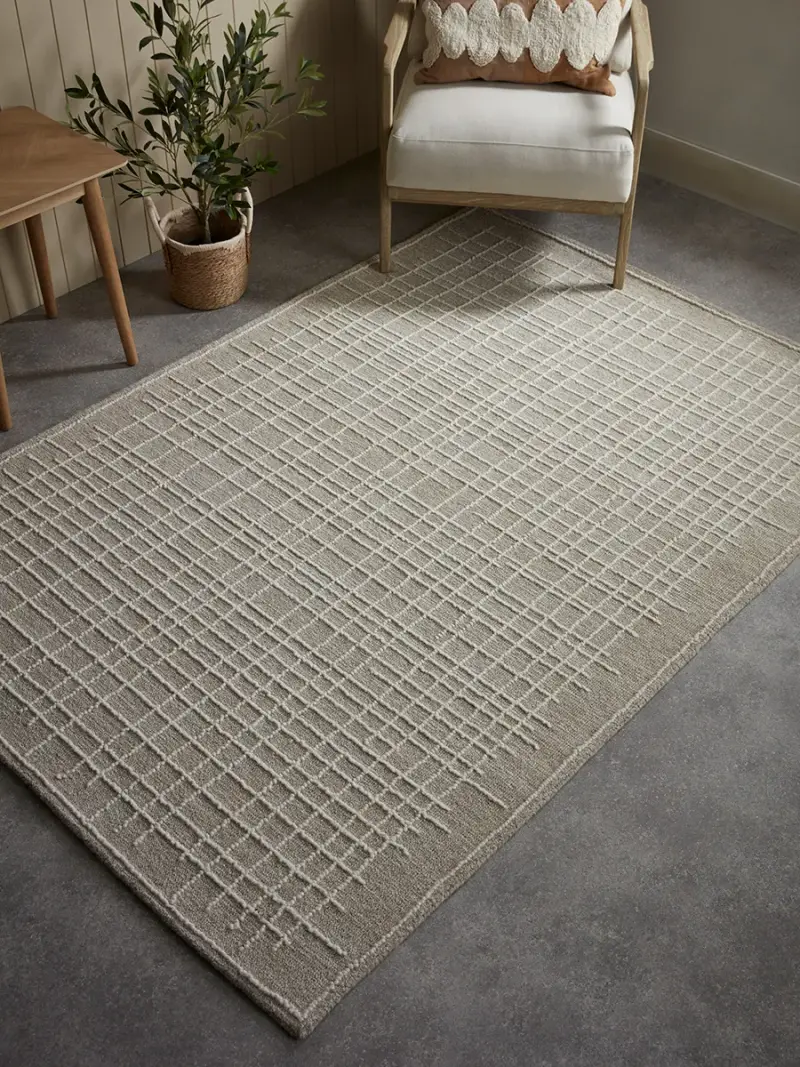 Neutral tones combine with a delicate tufting to create our Metouro rug - a supersoft woollen rug that inspires comfort and tranquillity in your home. Fine white lines are woven on the neutral base to create a grid like pattern that adds a modern and abstract feature to your living space. Click here to view our useful Rug Buying Guide.