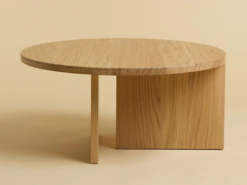 Low round wooden coffee table