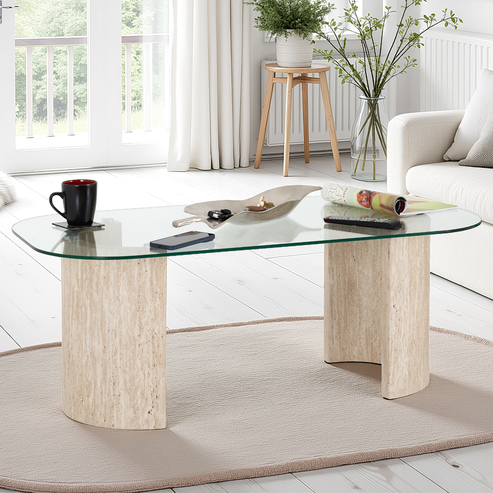 Our review of the Mirano Clear Glass Top Coffee Table With Cream Marble Effect Legs