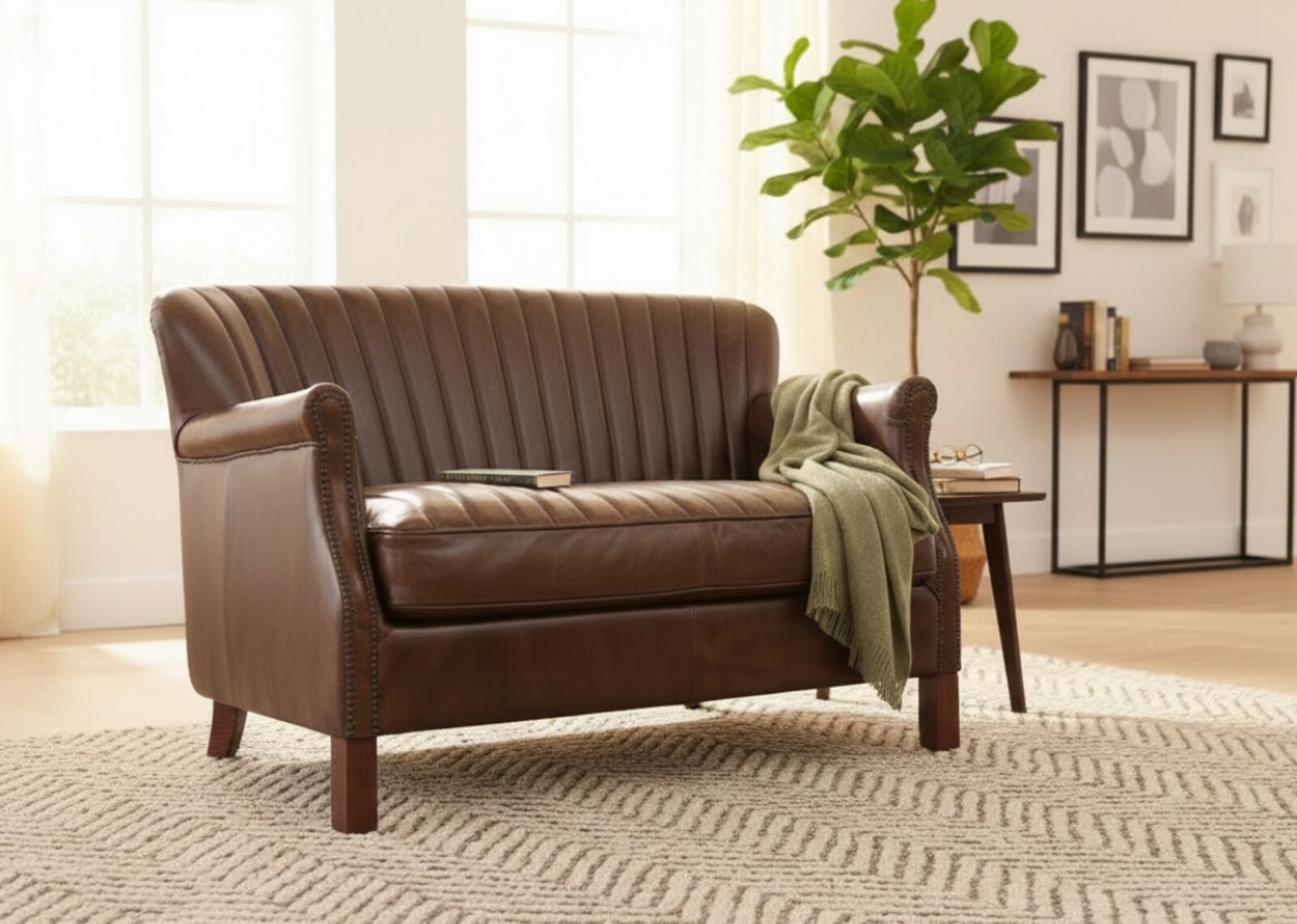 Add a touch of classic sophistication to your living space with this Montrose Vintage Leather Loveseat. Handcrafted for style and durability, this two-seater sofa features rich brown top-grain leather with rich patina and vertical channel tufting. The gently curved back and nailhead trim add a refined, vintage charm, while the high-resilience cushions provide lasting comfort. Genuine distressed leather upholstery Vertical channel back and seat design Antique brass nailhead trim on arms Sturdy solid wood legs with warm finish Perfect for: Home offices, reading nooks, small living rooms Bring heritage craftsmanship and cozy luxury into your home today. Dimensions (CM) 2 Seater L122 X W88 X H79 Apprx. What is Vintage Distressed Leather? The Vintage Distressed Leather Collection is meticulously crafted, perfectly preserves every inch of natural ageing marks, revealing not only the story of time but also the unique classic charm. Each piece is a Limited Edition…
