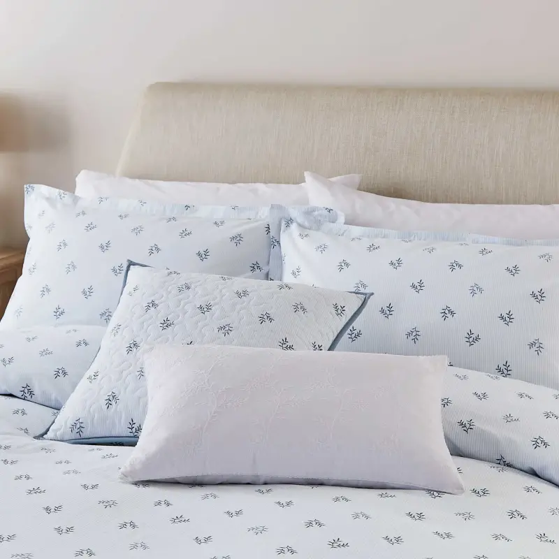 Thalia Single Duvet Cover Set Ballintoy Blue Thalia presents a simple all-over sprig style print in a soothing Ballintoy blue colourway. Garment washed for a super-soft, relaxed, lived in feel. 180 Thread Count, Cotton Percale. Includes Single Pillowcase