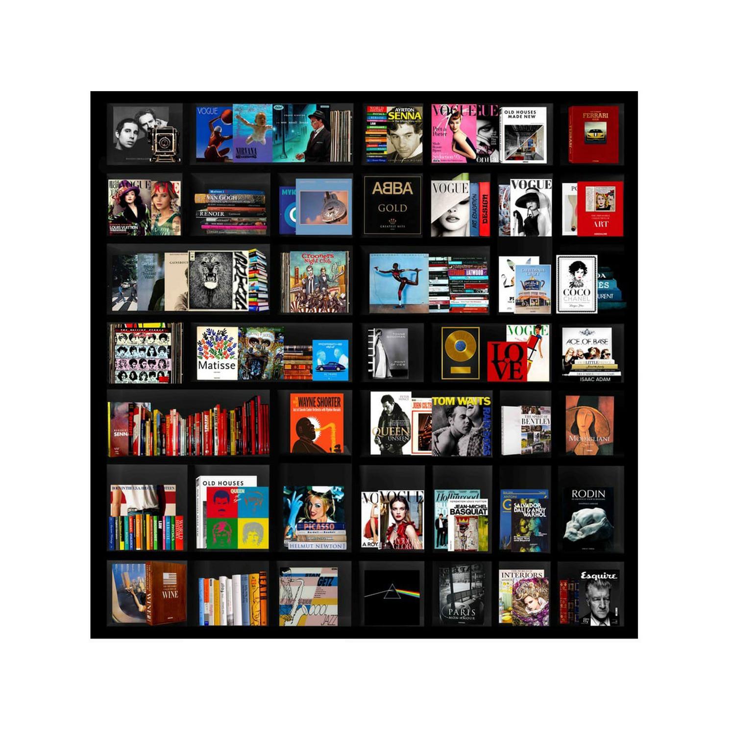 Browse these eclectic shelves and spot some of the most legendary names in art, music and popular culture, from Bob Dylan to Keith Haring, Dior to Pink!. Printed onto plexiglass for a sleek and glossy finish, artist Harley's bold and graphic work is the perfect centrepiece for a games or entertainment room. Part of our curated collection with Cobra Art. My Life In A Nutshell Vol.2 Black, Plexiglass Artwork, 100cm x 100cm - Andrew Martin