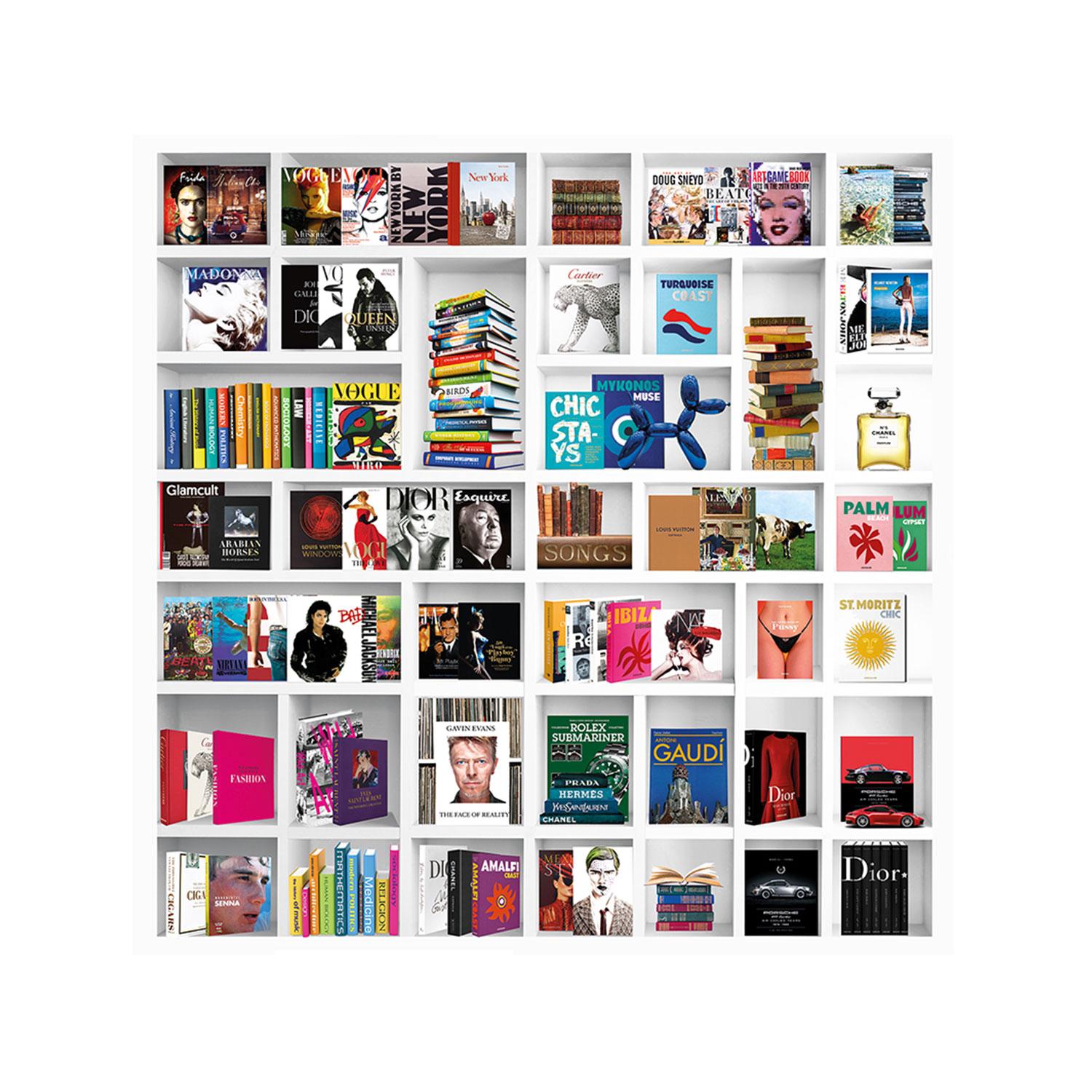 Browse these eclectic shelves and spot some of the most legendary names in art, music and popular culture, from Gaudi to Dior, David Bowie to Michael Jackson. Printed onto plexiglass for a sleek and glossy finish, artist Harley's bold and graphic work is the perfect centrepiece for a games or entertainment room. Part of our curated collection with Cobra Art. My Life In A Nutshell Vol. 3, 150cm x 150cm, White - Andrew Martin