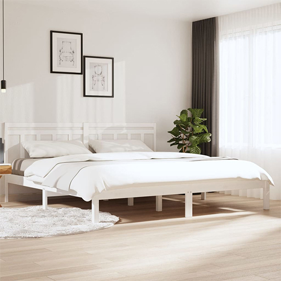 Naida Solid Pinewood Super King Size Bed In White
