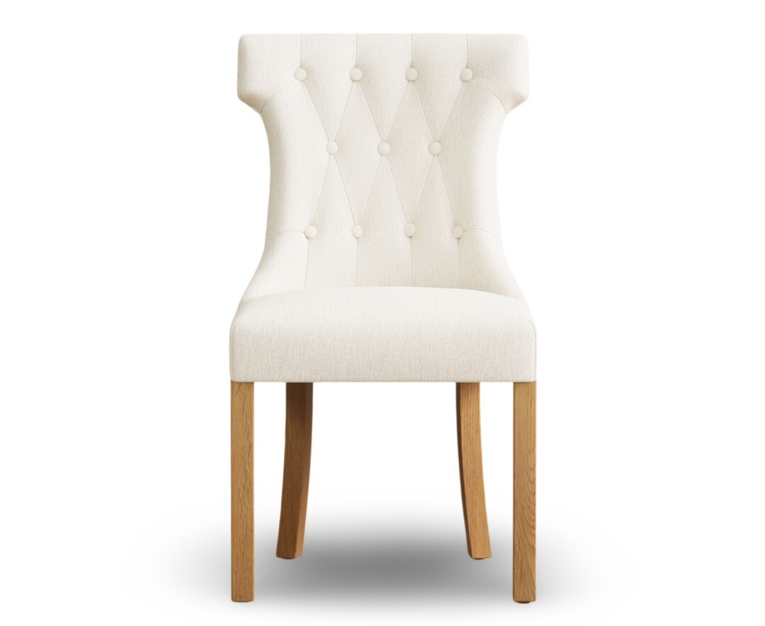 The Clara chair features an elegant silhouette finished with fabric and classic diamond stitching. Comfortable and stylish, this timeless chairs is an elegant addition to any dining space.