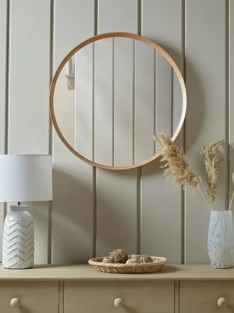 Simple yet stylish, this oak framed circular mirror is the perfect addition to any interior.The neutral oak frame adds a warming atmosphere, while the mirror adds depth and light to your home, perfect for creating the illusion of more space.Also available in a squoval shape.