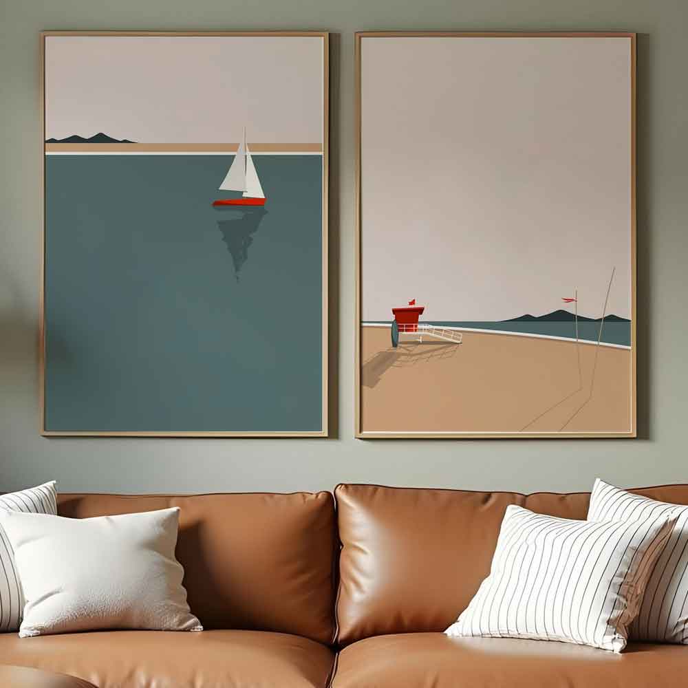 Transform your interiors with the calming beauty of coastal-inspired decor with the Oceanica Wooden Seaside Decorative Brown Frame Set by Furniture in Fashion. Designed to reflect the serenity of seaside landscapes, this elegant duo features soothing multicoloured artwork that brings a fresh and relaxing vibe to your space. The warm brown wooden frames complement the artwork beautifully, making it a perfect addition to coastal, modern, or nature-inspired interiors. Crafted with premium materials and attention to detail, each piece is printed on durable MDF and framed in solid wood for a refined and long-lasting finish. Whether displayed together to create a cohesive wall statement or styled separately across different rooms, this frame set enhances your home with a blend of tranquillity, colour, and modern elegance. FEATURES: Material: 100% MDF, 100% Solid Wood Finish: Multicolour Painting is made from 100% MDF, Frame is made from 100% Solid Wood Stylish set of 2 seaside-inspired decorative wall frames Multicoloured artwork captures the beauty and calmness of coastal landscapes Warm brown solid wood frames add natural charm and depth Made from 100% MDF with 3 mm thickness for a smooth and durable finish High-quality 100% solid wood frames with 2. 5 cm thickness for strength and durability Each frame measures 30 x 40 cm, ideal for versatile wall arrangements Ready-to-hang design for quick and easy installation Perfect for living rooms, bedrooms, hallways, and office spaces High-definition printing ensures vibrant colours and fine detailing Lightweight yet sturdy construction for easy handling and placement Available at an affordable price Images shown are for illustrative purposes only DIMENSIONS: Height: 40cm Width: 30cm Depth: 0. 3cm
