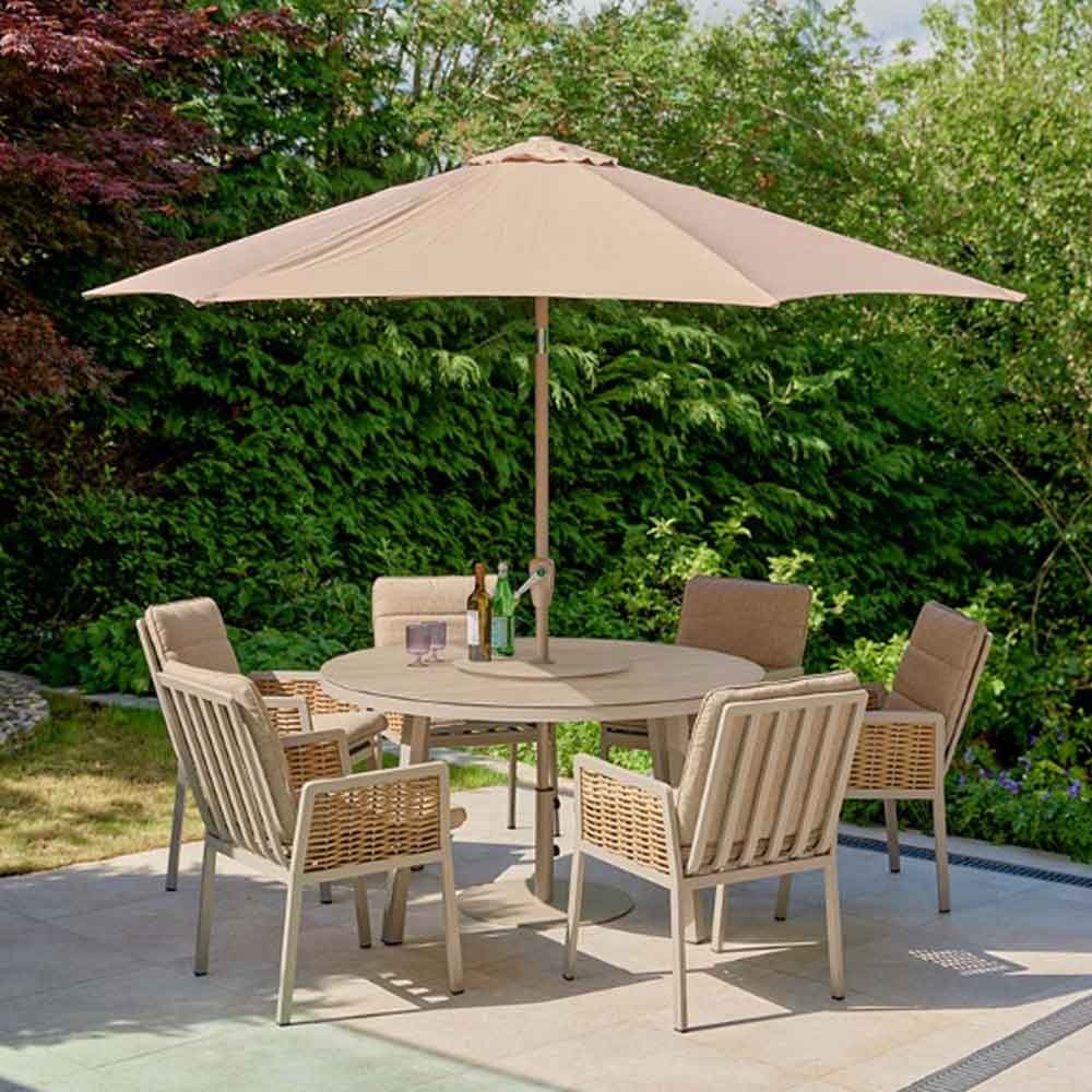 Orbit Aluminium Garden 6 Seater Dining Set With Parasol In Beige