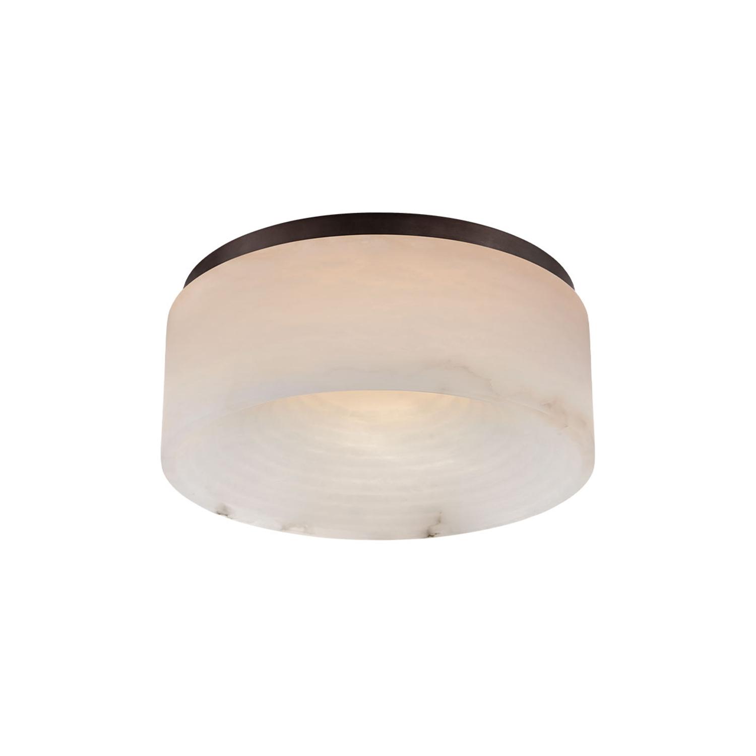This simple and elegant ceiling light is formed from a round metal base with an inverted alabaster shade. The frosted nature of the shade radiates a soothing glow and creates a soft ambience in your space, perfect for bedrooms or living areas. Otto Ceiling Light Bronze, Flush Mount, Medium - Andrew Martin