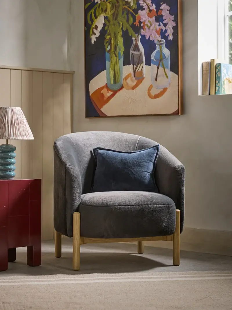 Fall into comfort with our Ottowa armchair. The curved back with high sides offers ample support, whilst the plump filling creates the perfect place to sink into. Upholstered in a dark faux fur fabric, the softness of this armchair makes it even more inviting. Pair with a cushion, throw, and the matching footstool for the perfect cosy reading nook.