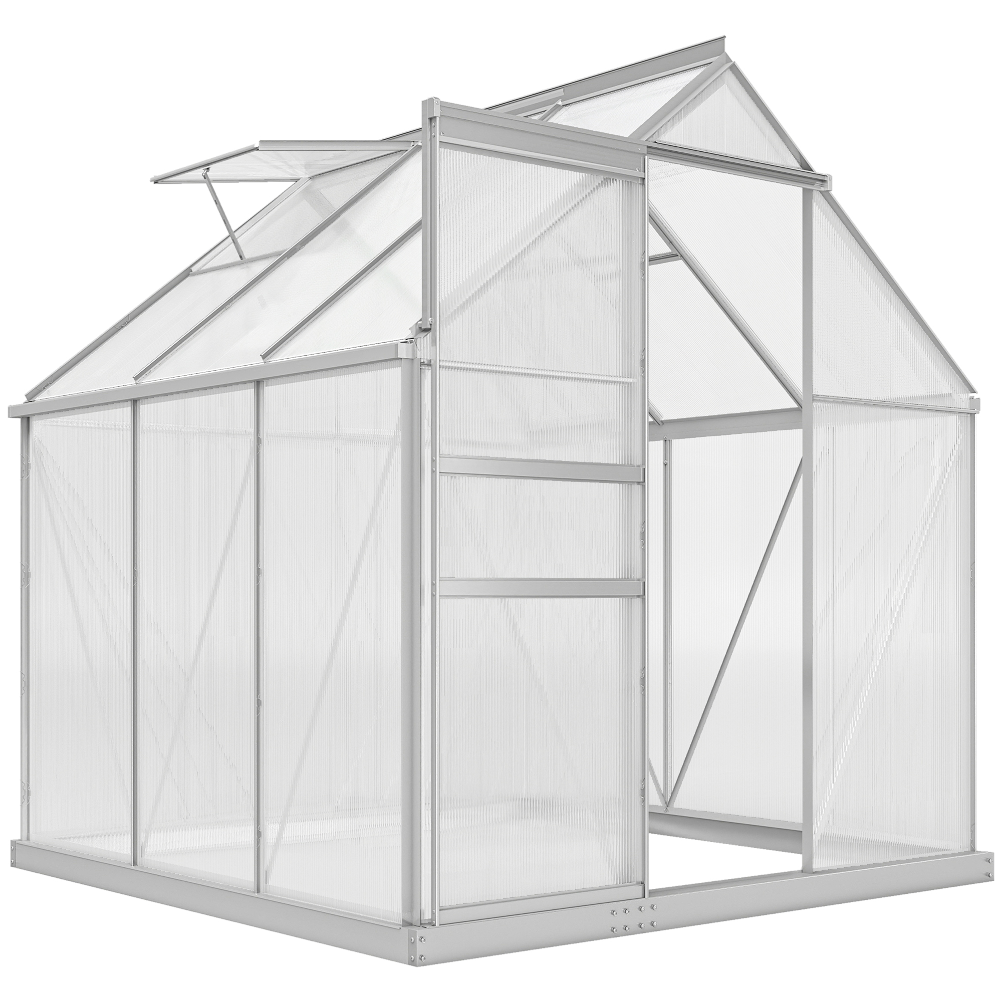 Outsunny 6x6 Ft Walk-in Polycarbonate Greenhouse Durable Aluminium Garden Green House With Adjustable Roof Vent Uv Protection Galvanised Base For Year-round Growing Aosom Uk