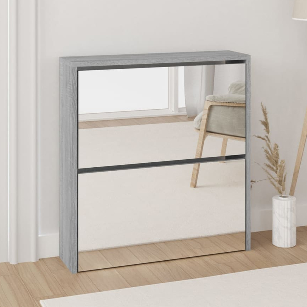Ozark Mirrored Shoe Storage Cabinet With 2 Flip Doors In Grey Sonoma