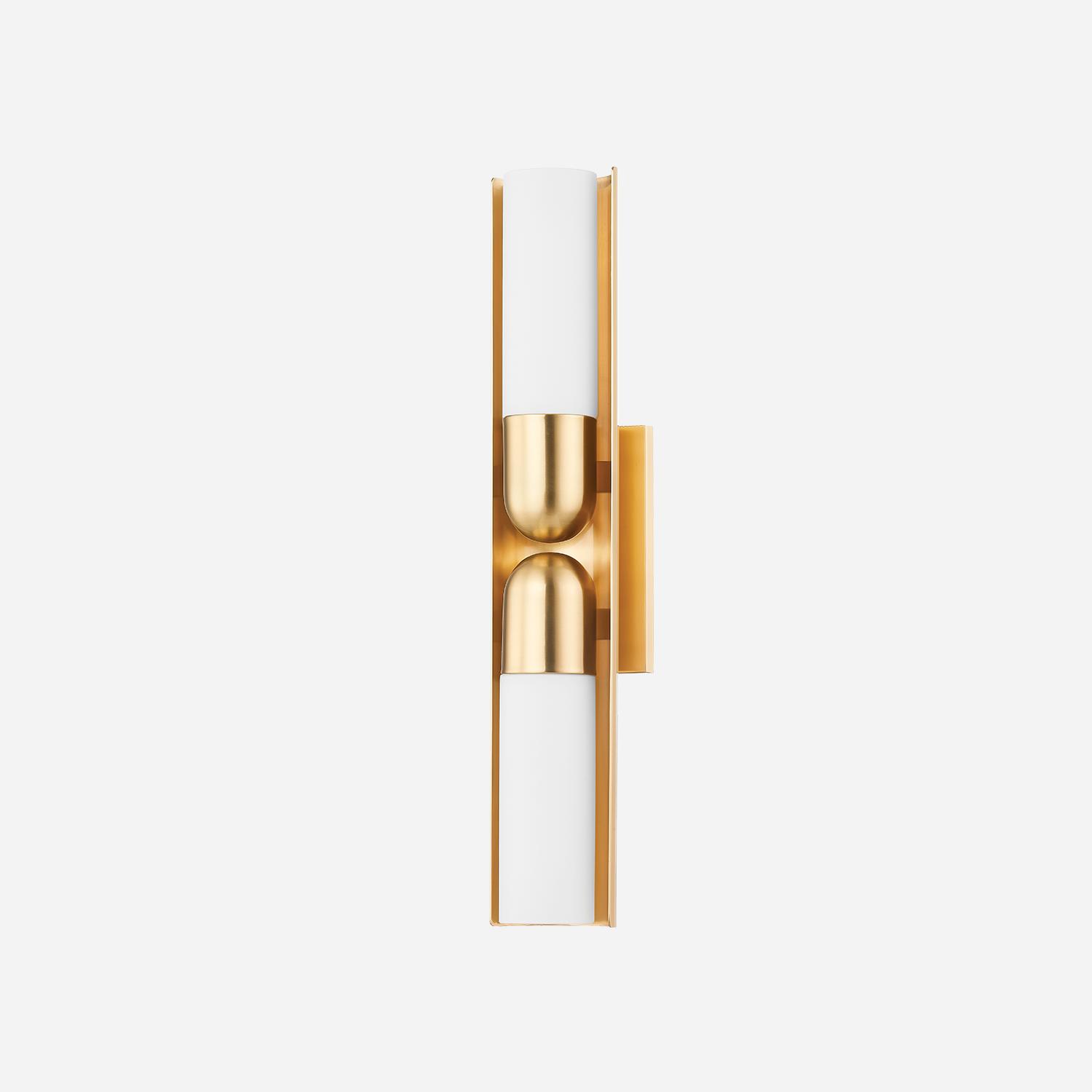 Elevate your space with Paolo, an elegant wall light in aged brass. Featuring opal glass and a sleek, modern design, it casts a warm, inviting glow. Paolo, Light, Brass - Andrew Martin