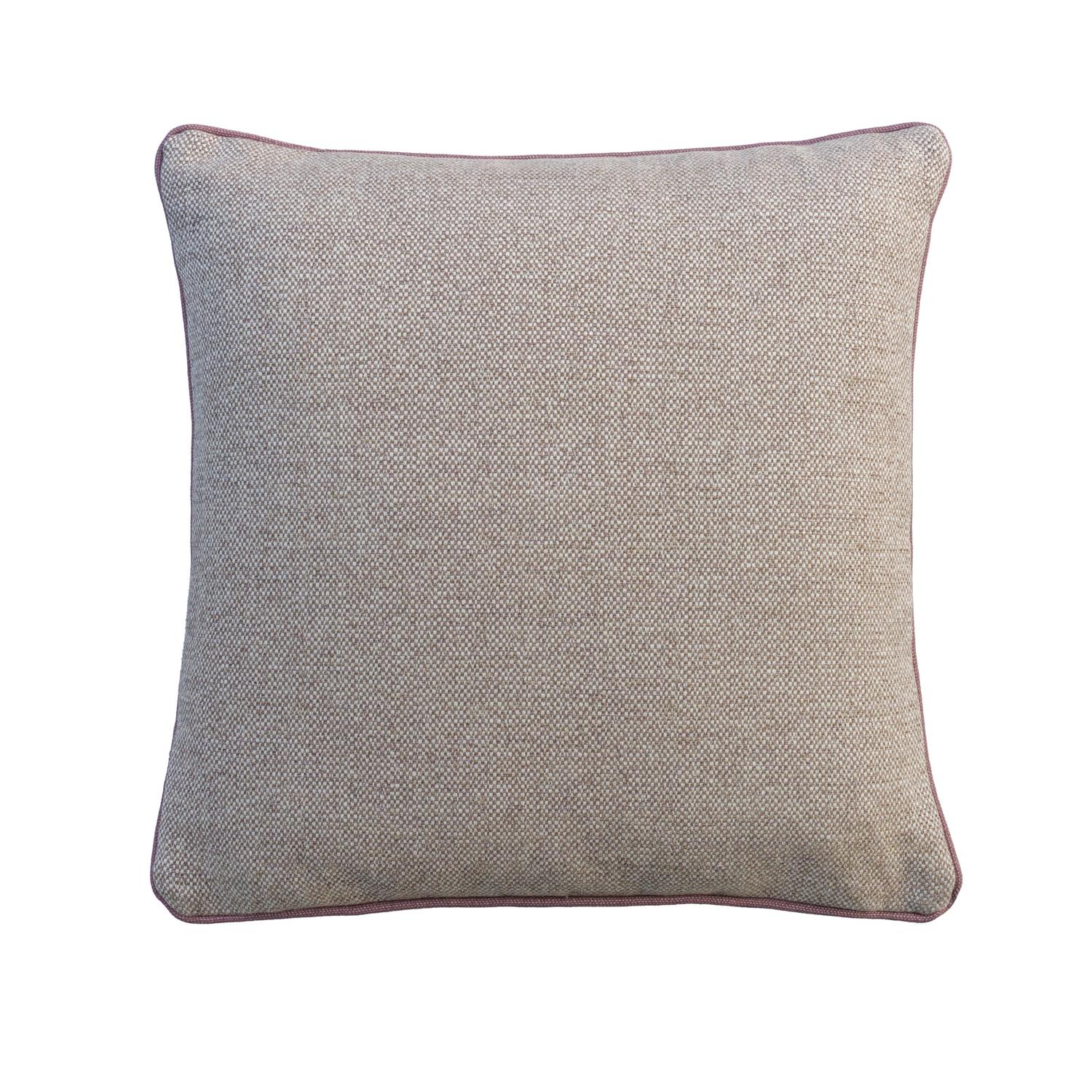 A cushion in Paraggi Granita, a two-tone plain weave in a soft taupe-beige with a warm undertone, finished with piping in Rocco Heather. Paraggi Granita, Sustainable Feather, Cushion, 55cm x 55cm - Andrew Martin Linen Blend Plain & Weave