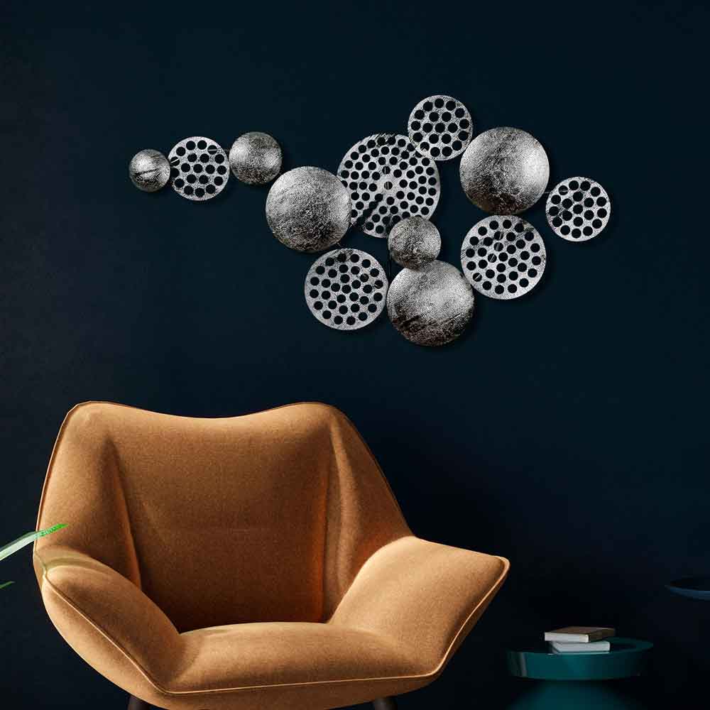Introduce sleek sophistication to your interiors with the Parklane Metal Solaris Orbital Wall Art in Silver by Furniture in Fashion. Inspired by celestial orbits and modern geometry, this elegant wall decor piece features flowing circular patterns that create a sense of motion and balance. The refined silver finish adds a contemporary shine, making it a perfect statement piece for minimalist and modern living spaces. Handcrafted from premium-quality metal, this wall art is designed to offer durability along with a polished, high-end appearance. The intricate orbital detailing enhances depth and visual interest, while the lightweight structure ensures easy handling. With a built-in hanging fixture, it can be effortlessly mounted to elevate your living room, bedroom, hallway, or office decor. FEATURES: Material: 100% Metal Finish: Silver Made from 100% metal (1. 5 mm thickness) for strength and long-lasting durability Unique Solaris Orbital design inspired by celestial forms Elegant silver finish for a modern and sophisticated look Handmade craftsmanship ensures a distinctive and high-quality piece Easy to hang with a built-in mounting piece on the back Suitable for living rooms, bedrooms, hallways, and office spaces Lightweight yet sturdy construction for hassle-free installation Enhances interiors with a contemporary and artistic aesthetic Perfect as a stylish gift for home decor lovers and special occasions Available at an affordable price Images shown are for illustrative purposes only DIMENSIONS: Height: 45cm Width: 82cm Depth: 0. 15cm