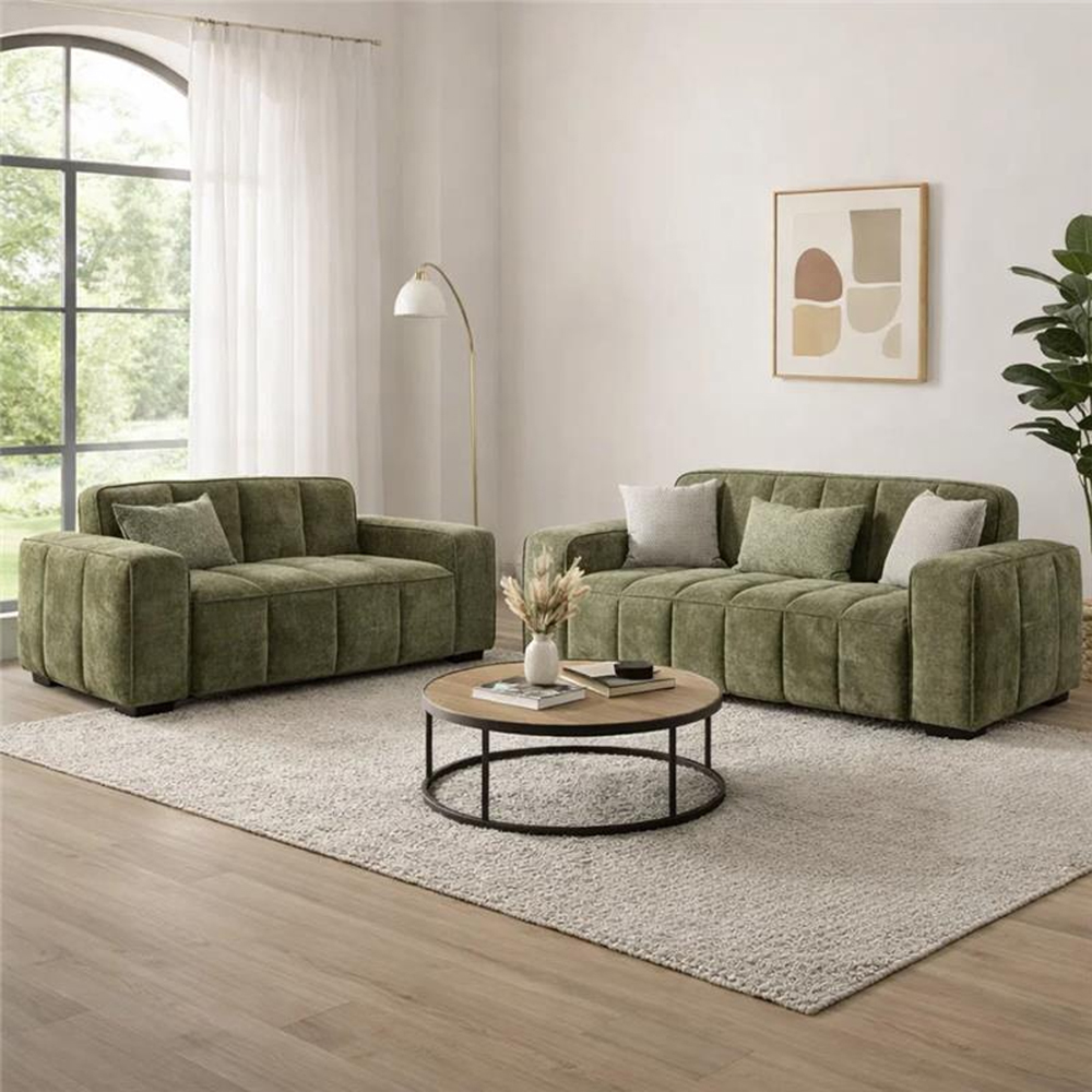 Introduce a bold yet sophisticated statement to your living space with the Furniture in Fashion Pelaro Fabric 3+2 Seater Sofa in Olive Green. Designed for modern homes, this stylish sofa set includes a spacious 3-seater and a matching 2-seater, offering generous seating for family and guests. The rich olive green upholstery adds a natural, earthy tone that enhances both contemporary and classic interiors, making it a standout centrepiece in any living room. Crafted with a strong internal wooden frame and upholstered in high-quality fabric, the Pelaro sofa set ensures durability and long-lasting comfort. The foam-filled cushions provide excellent support for everyday use, whether you're relaxing, entertaining, or spending time with loved ones. Olive green is a trending interior colour known for its versatility and ability to create a calm, inviting atmosphere while complementing a wide range of decor styles. The Furniture in Fashion Pelaro Fabric 3+2 Seater Sofa in Olive Green combines spacious comfort, durability, and modern style. Ideal for contemporary homes, it offers a practical and visually striking seating solution for everyday living and entertaining. FEATURES: Material: Fabric, Polyester Finish: Olive Green Set Include: 1 x 2 Seater Sofa, 1 x 3 Seater Sofa Upholstered in premium olive green fabric for a stylish and modern look Durable solid wood frame construction ensures long-term strength and stability Comfortable foam-filled seat cushions provide excellent support and relaxation Spacious seating ideal for family living and entertaining guests Elegant olive green tone complements modern, contemporary, and classic interiors Designed with supportive backrests and comfortable armrests Sturdy legs provide enhanced stability and durability Easy to maintain suitable for regular cleaning and everyday use Perfect for living rooms, lounges, and office reception areas Available at an affordable price Images shown are for Illustrative Pu
