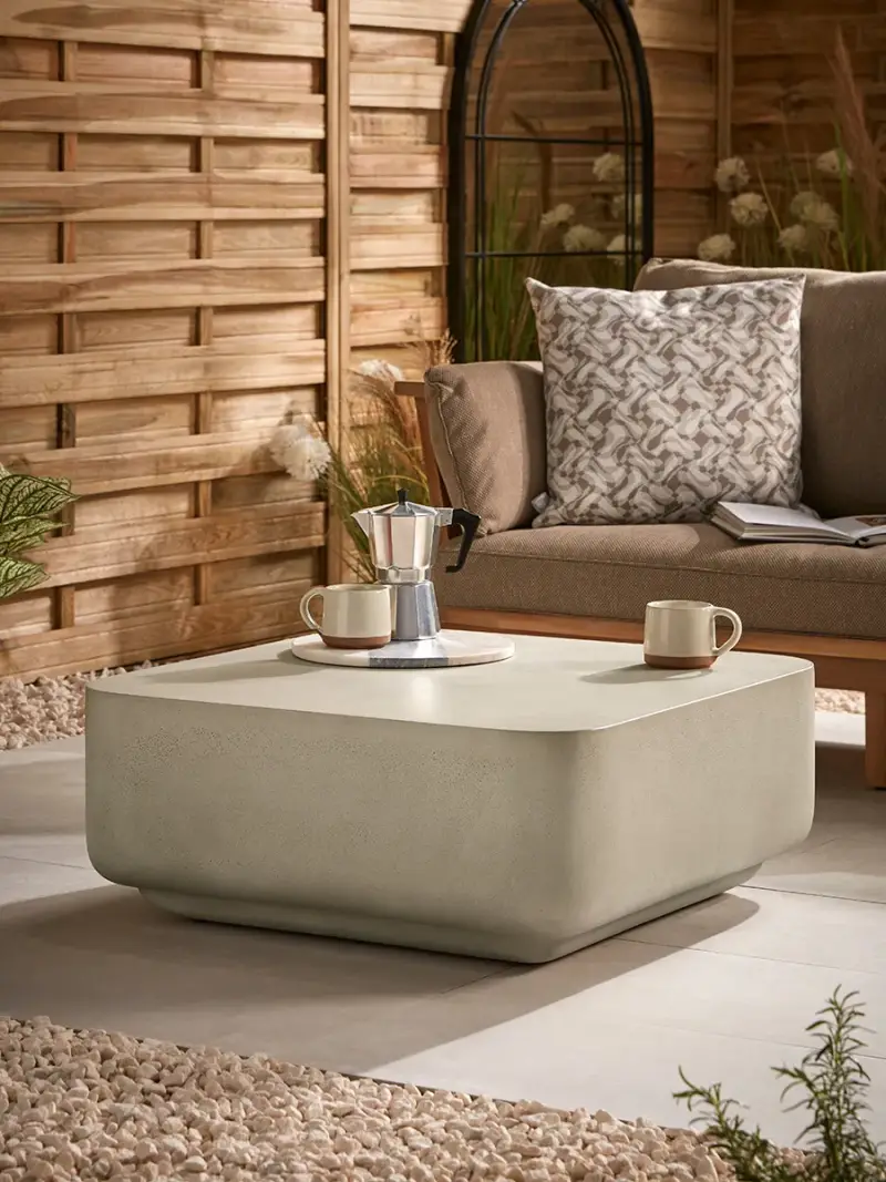 For a natural and modern garden, our Portofino Coffee Table sits wonderfully between a variety of garden sofas and chairs. Soft a curvaceous edges pair with the simple boxy shape, creating a minimalist coffee table that ensures the perfect place to host an outdoor coffee morning with friends and family in the warm summer months. Pair with the side table for a completed look.