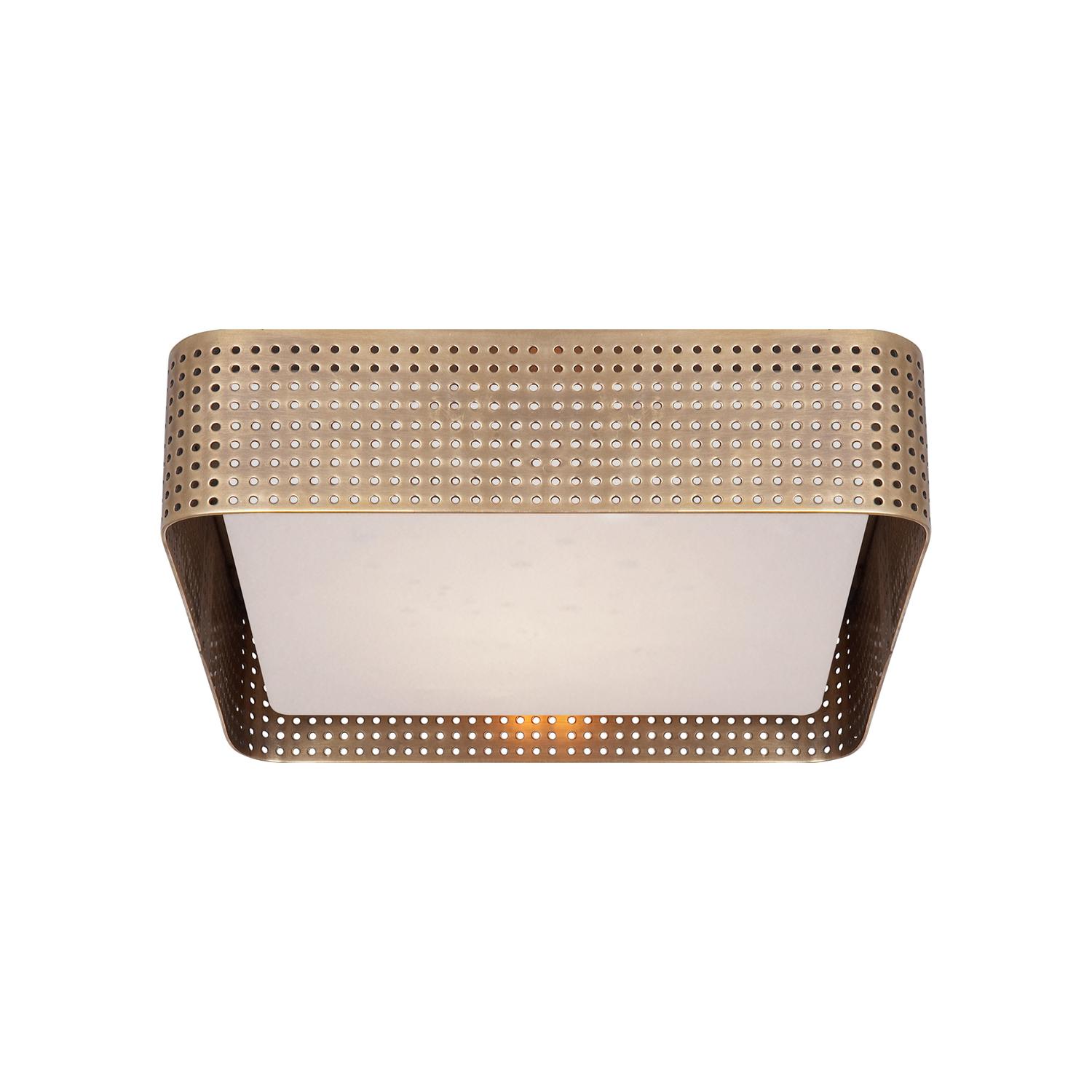 Modern square ceiling light in brass Featuring perforated antique brass in a square sculptural form, Precision is born out of a love of architecture, and the interplay of light over form. These perforations diffuse and reflect light, adding delicate texture and a rich sense of depth to any space. Precision Flush Brass, Ceiling Light, Antique-Burnished Brass - Andrew Martin