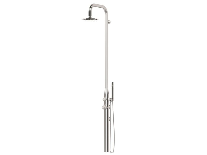 Wall-mounted stainless steel outdoor shower with hand shower