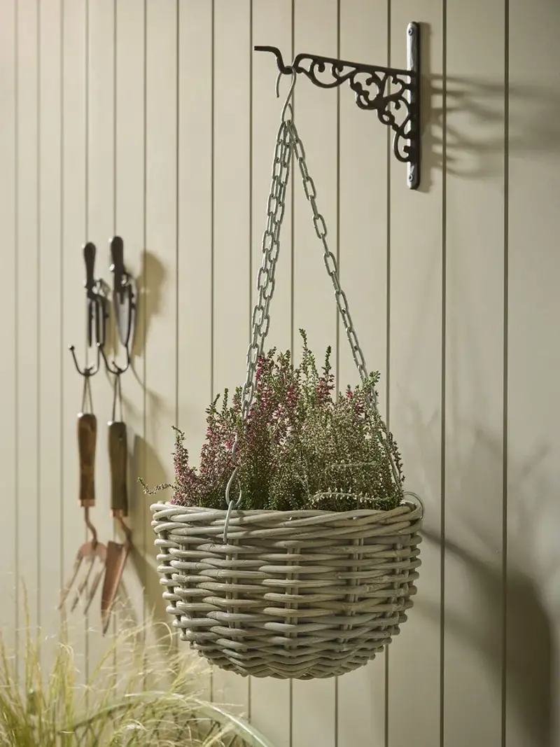 Our Rattan Nest Hanging Basket brings a natural, handcrafted charm to your outdoor spaces.Woven from durable faux rattan in a soft, weathered grey, its curved, nest-like form offers a beautifully organic home for trailing plants or seasonal blooms. The sturdy, galvanised steel chain prevents rusting and makes it easy to hang and maintain, whether under a porch, on a terrace, or beside a garden door.Effortlessly stylish and holding beautiful blooms, it's a simple way to introduce texture, height, and colour to your garden, whether by the front door to welcome guests, or by the back door for you to enjoy.