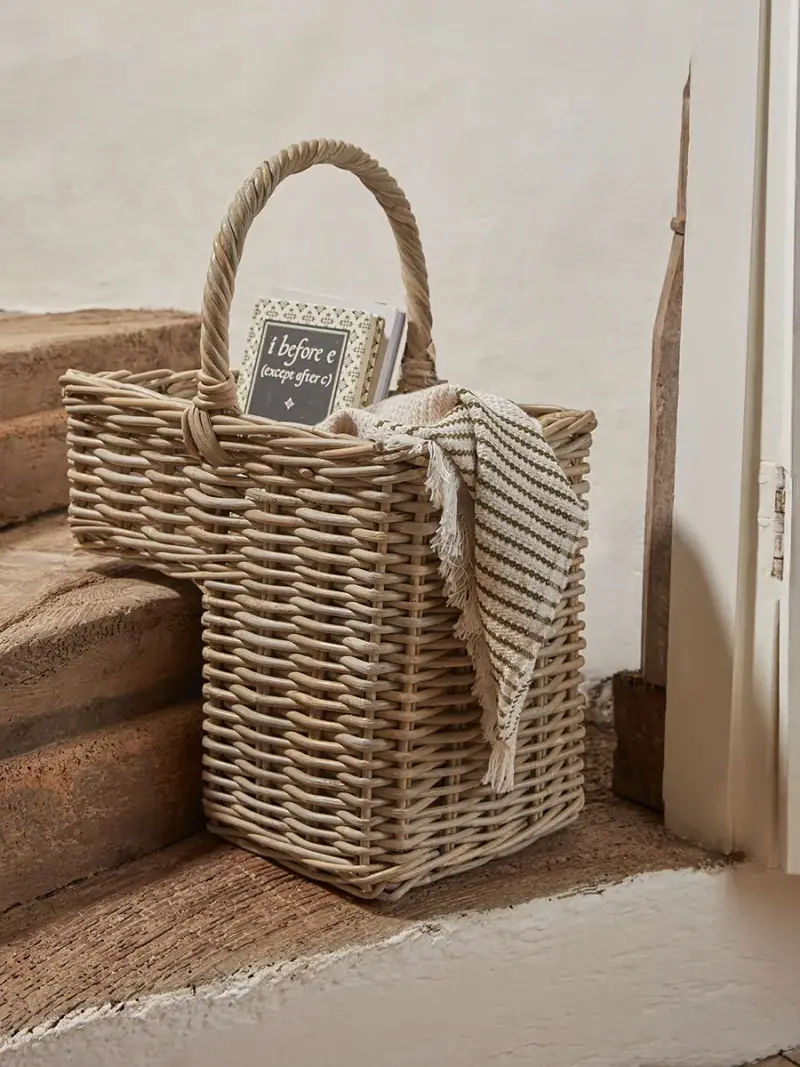 Delicately woven rattan works to create a basket that is as practical as it is stylish.Designed to fit perfectly on your stairs, and with its long handle to carry, it is ideal for placing items in to carry up the stairs and return to their rightful place, without being an eyesore to those who see it.