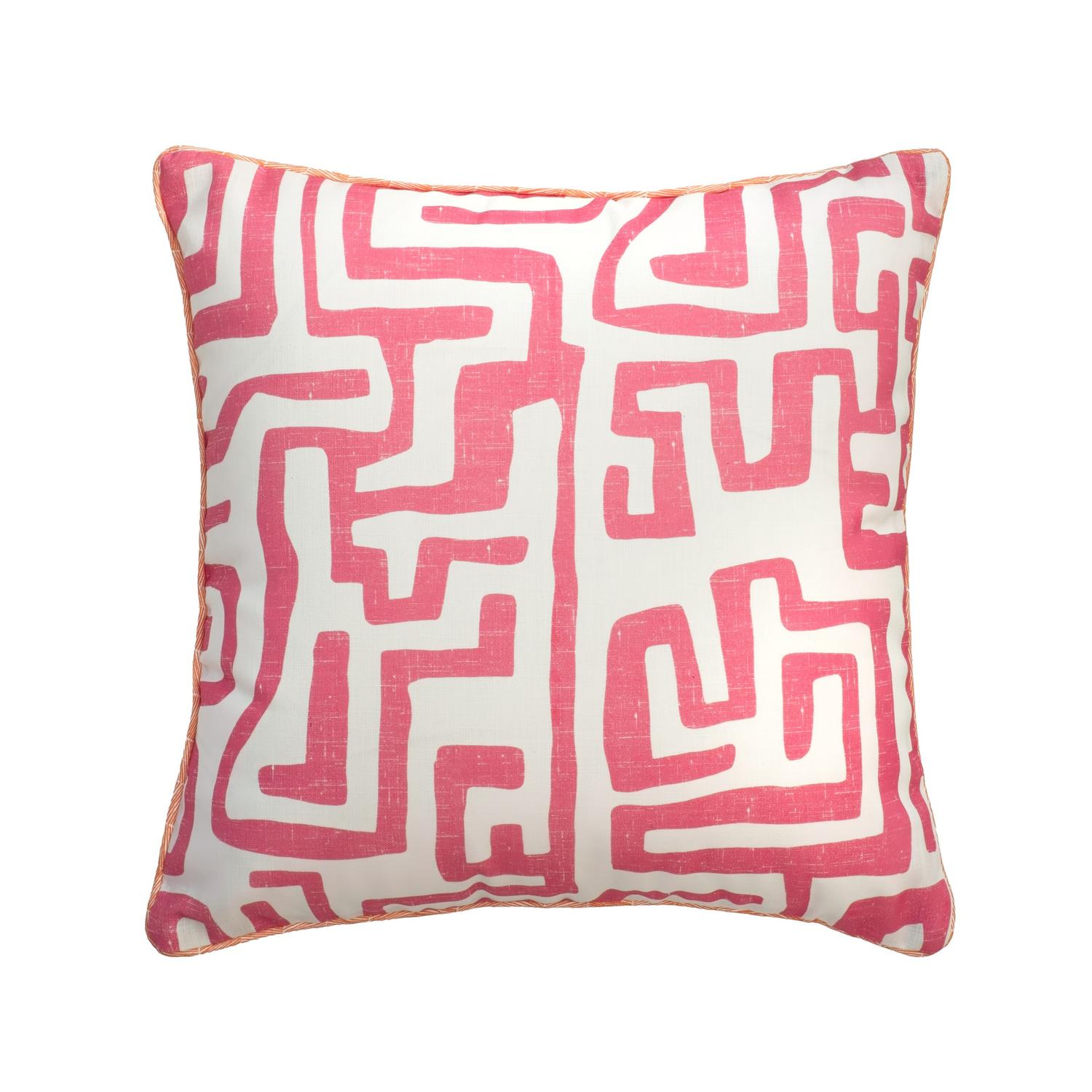 This free-flowing design was inspired by the interlocking bed of coral that typically exists around shallow tropical waters. Made From Reef Tropic in vivid hot pink, this cushion has been finished with contrasting vibrant orange velvet piping and feels relaxed and contemporary, perfect for turning your outdoor space into a cosy and comfortable living area. This cushion is part of our collection 'The Great Outdoors', it has a shower resistant finish which is also anti -mould, anti-mildew and anti-microbial, and has been filled with a hollow fibre pad. Each fabric has been printed using EcoFast digital pigment printing methods, which use 50% less water than traditional print methods. We do recommend however, that these scatter cushions are looked after carefully and are best used in dry weather. As with most outdoor textiles, they prefer to be stored inside when they are not being used, or during periods of wet, cold or damp weather.