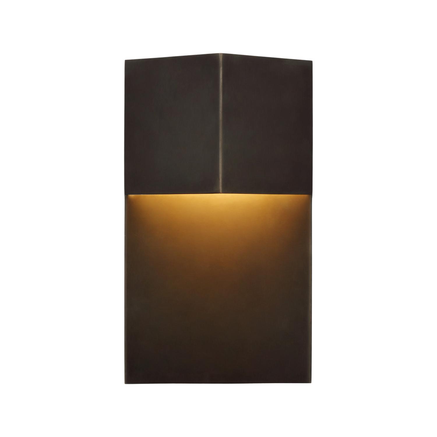 The pared-back Rega evokes a sentinel presence through regimented vertical lines and angular forms. Beams of ambient warm LED light are cast from prismatic shades of burnished brass or bronze - suitable for use indoors and out. Rega Wall Light Bronze, Wall Light - Andrew Martin