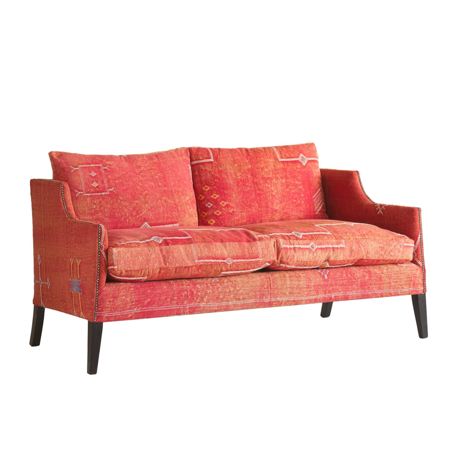 Bring the warmth and joy of the Medina into your home with this beautiful and colourful sofa upholstered in original Moroccan textiles. Available in orange, pink, white, green, yellow or blue, the fabric on these armchairs is handwoven by artisans in Marrakesh. Regal Sofa Moroccan, Sofa, Orange - Andrew Martin
