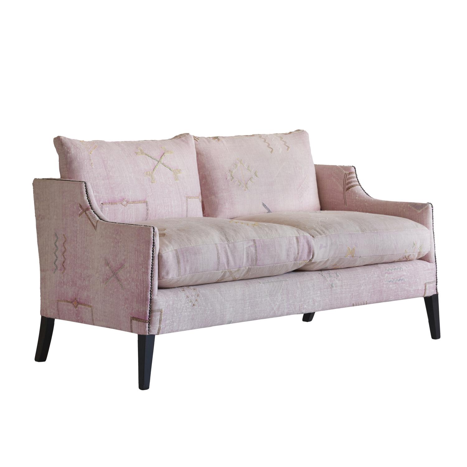 Bring the warmth and joy of the Medina into your home with this beautiful and colourful sofa upholstered in original Moroccan textiles. Available in orange, pink, white, green, yellow or blue, the fabric on these armchairs is handwoven by artisans in Marrakesh. Regal Sofa Moroccan, Sofa, Pink - Andrew Martin Linen