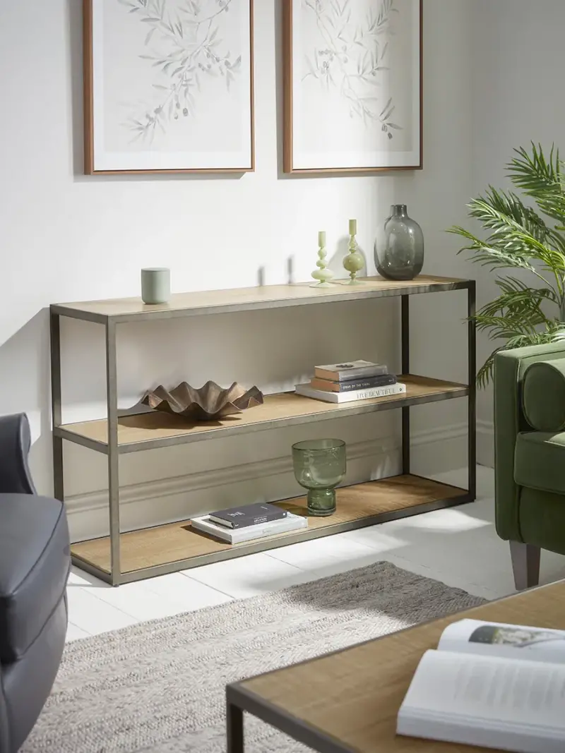 Our Renton console table is the perfect minimalist addition to your space. Narrow but with plenty of space to present your favourite books or decorative accessories, the blonde wood with metal framing adds a contemporary feel, perfect for an industrial style interior. Pair with our Renton side table and coffee table for the completed look.