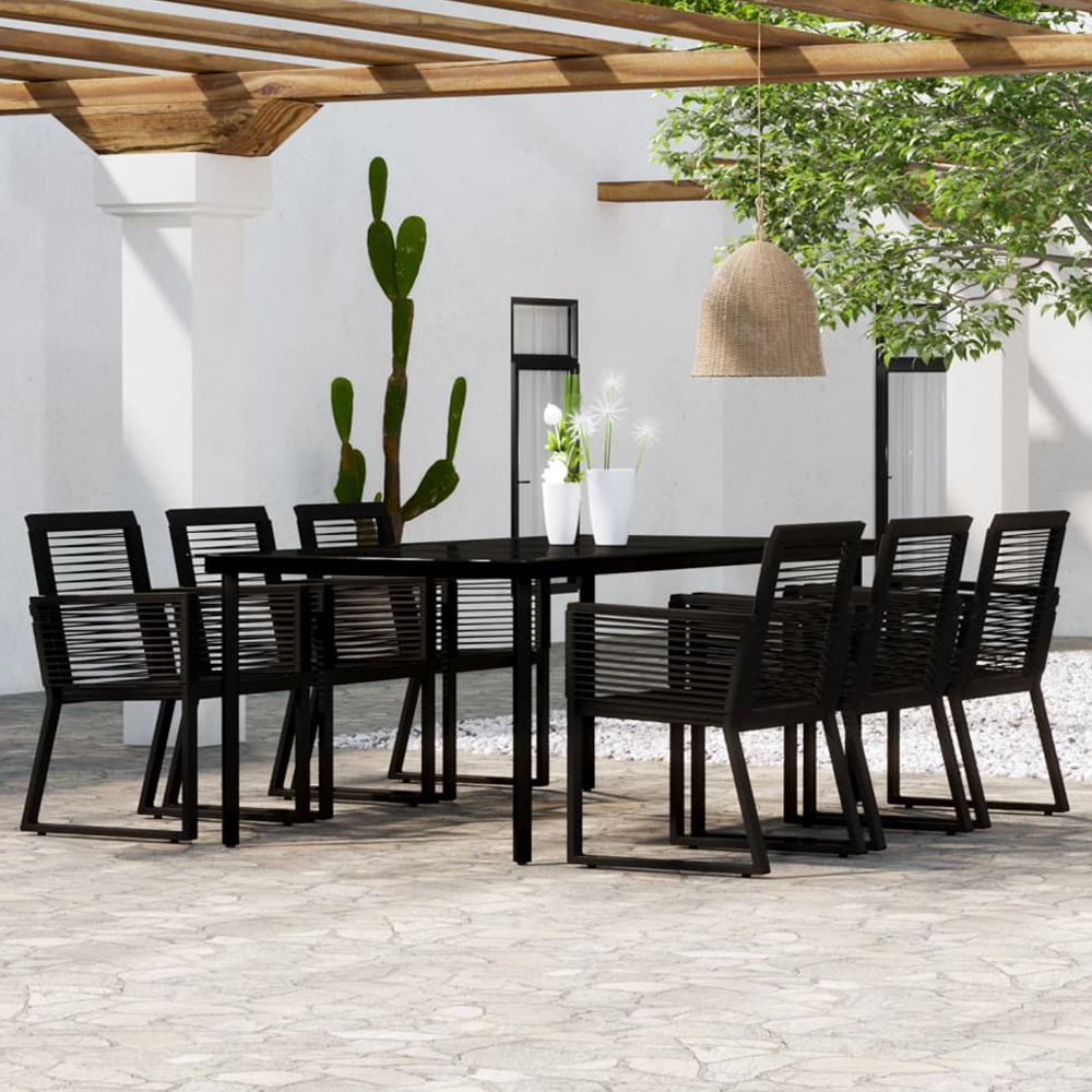 Enhance your outdoor dining experience with the elegant Furniture in Fashion Revano Garden 200cm Glass Top Dining Table with 6 Chairs in Black, a perfect blend of modern design and long-lasting durability. Featuring a spacious 200cm tempered glass tabletop and a robust powder-coated steel frame, this garden dining set is designed to elevate any patio, terrace, or garden space with a premium and contemporary look. Ideal for hosting large family gatherings and outdoor entertaining, this stylish 7-piece dining set offers generous seating for six people while ensuring maximum comfort and functionality. Inspired by high-quality outdoor furniture standards, it delivers weather-resistant construction, easy maintenance, and a sleek black finish that complements any modern outdoor decor. The Furniture in Fashion Revano Garden 200cm Glass Top Dining Table with 6 Chairs in Black is a perfect choice for those seeking a spacious, stylish, and durable outdoor dining solution. With its modern design and premium construction, it transforms any outdoor area into a sophisticated dining space ideal for entertaining and everyday relaxation. FEATURES: Material: Powder-Coated Steel, Glass, PVC Rattan, Steel Finish: Black Set Include: 1 x Dining Table, 6 x Dining Chairs Create a compelling and cohesive aesthetic in your outdoor space with this garden dining set This dinner table is made of a powder-coated steel frame, sturdy and stable for daily outdoor use The smooth glass tabletop is easy to clean with a damp cloth and perfect for placing meals, drinks, and other decorative items The garden chairs are made of PVC rattan, woven over a fine lacquered steel frame, making them stable and resistant to poor weather and UV rays Good to know: In order to extend the life of your outdoor furniture, we recommend you to protect it with a waterproof cover Modern look that suits any setting UV-resistant for long-lasting use Simple upkeep for everyday living Glass thickness: 5m