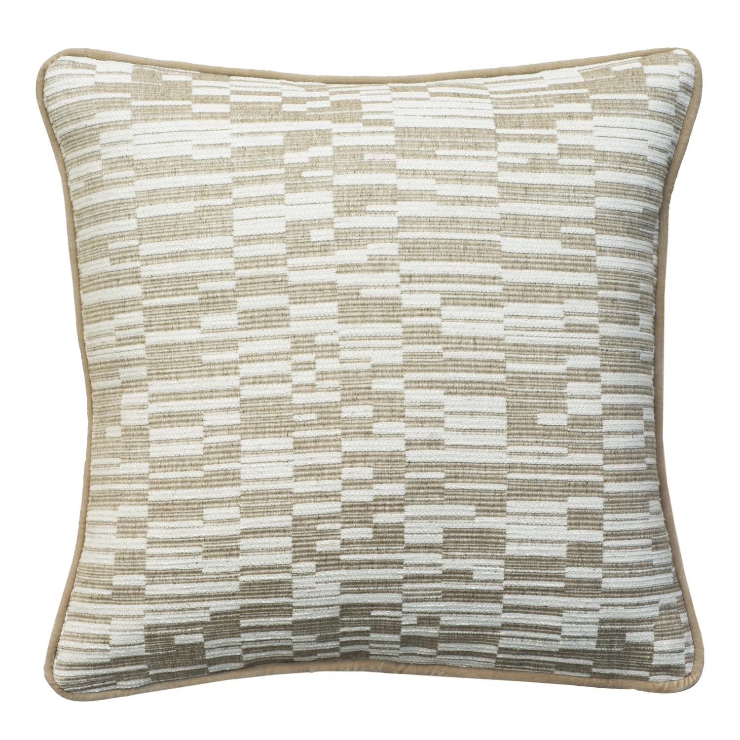 A luxurious cushion with a beautiful irregular ottoman design, made from neutral Rib Rope and finished in soft Medici Stone piping. ldeal for introducing a layer of texture and colour to any sofa, armchair or bed. Rib Rope, 50/50% Wool And Feather Mix, Cushion, 55cm x 55cm - Andrew Martin Woolkeepers Eco-conscious & Chenille & Wool & Feather Filling & Cotton Ble
