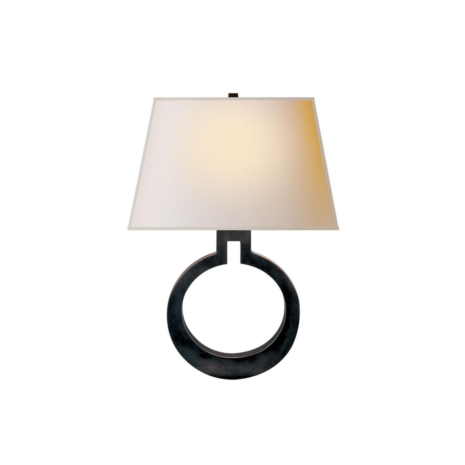 Characterful wall light in bronze, fashioned into a ring with a paper shade. Created by lighting icon E.F. Chapman, combining traditional and modern design. Ring Form Wall Light Bronze, Wall Light - Andrew Martin