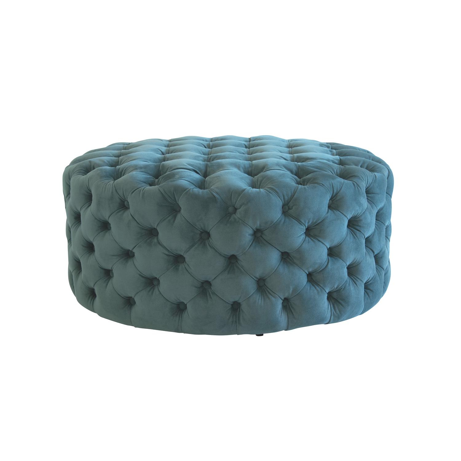 A great alternative to a coffee table, the elegant Rondo ottoman makes a stylish centrepiece with its soft curves and deep buttoning. Style it with a tray or books, or simply relax and put your feet up in comfort. Finished in rich velvet in a choice of colourways. Rondo Teal, Stool - Andrew Martin Other Fabric