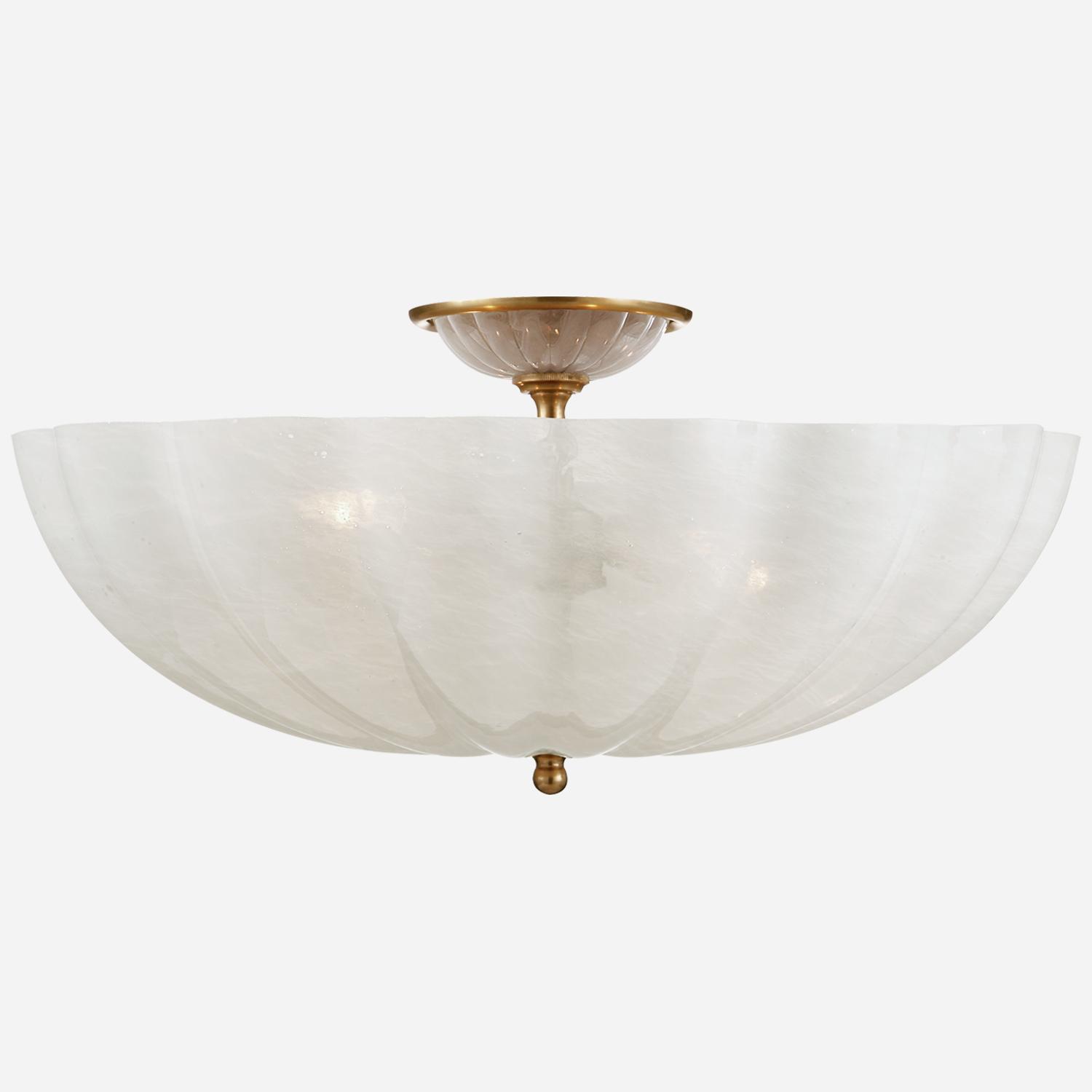 Elegant ceiling light with glass bowl and brass fittings With an elegant design that adds character to minimal interiors, while also complementing period rooms, Rosehill is crafted from a scalloped glass bowl with brass fittings, which casts a beautiful glow over large rooms with lower ceilings. Rosehill Flush Brass, Ceiling Light, Hand-Rubbed Antique Brass - Andrew Martin