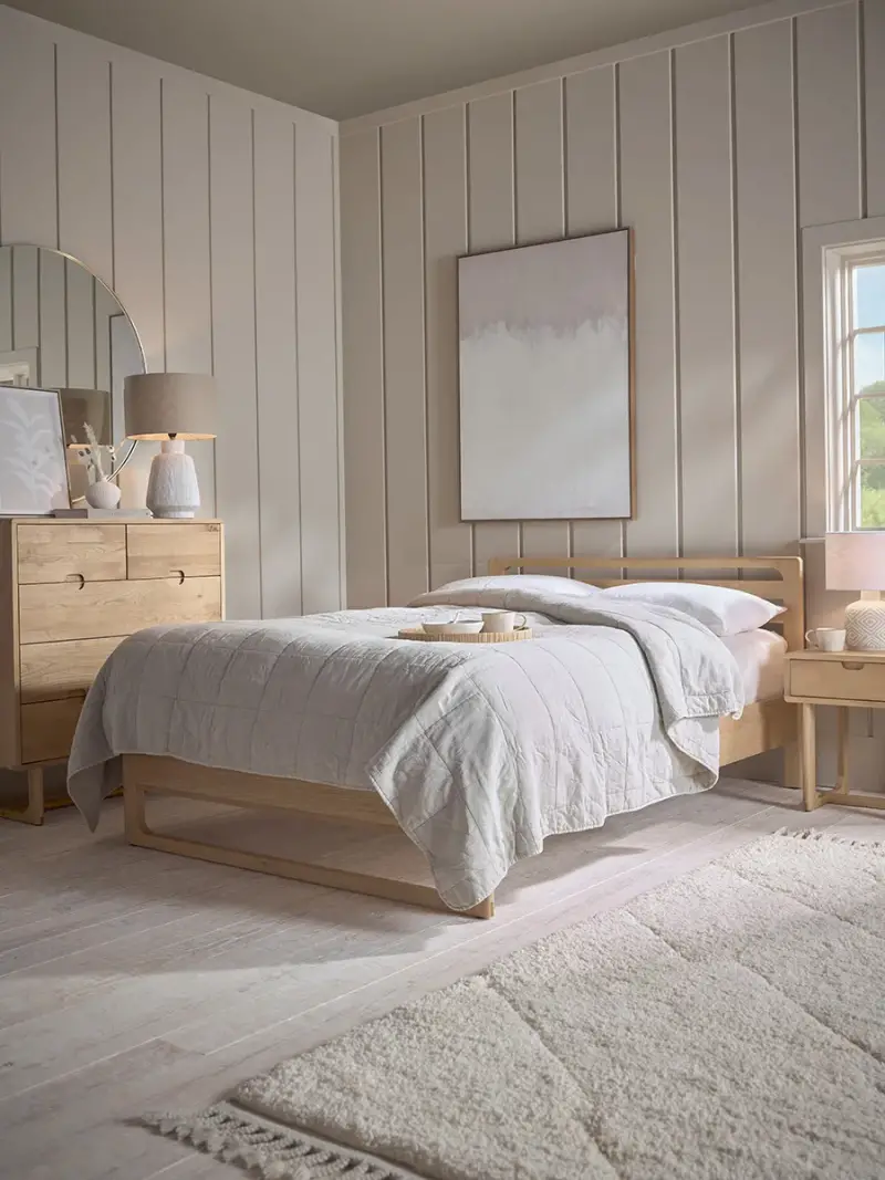 Horizontal bars grace the headboard of our Salo Bed, creating a simple design that is sure to fit any interior scheme. It's warm wood frame pairs beautifully with the Scandi inspired clean lines, perfect for a relaxing and welcoming environment. To complete your bed, we offer an exclusive range of luxurious made to order mattresses including the Dreamy 1400 Pocket, Sublime 2000 Pocket, Deluxe 3000 Pocket and Opulent 4000 Pocket.
