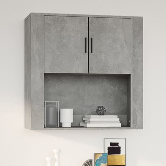 Sarnia Wooden Wall Storage Cabinet With 2 Doors In Concrete Effect, This practical and decorative hanging wall cabinet introduces an air of unique charm to your existing interior. FEATURES : Material : Engineered Wood Finish : Concrete Effect The engineered wood is of exceptional quality with smooth surface and also features strength, stability and resistance to moisture Made of engineered wood, this hanging cabinet is easy to clean This wall-mounted cabinet offers sufficient space to keep things organised The side cabinet can be wall-mounted to add extra storage space That way, you can maximise your floor space and keep the area clean You can also put it on the top of a sideboard to make a highboard, creating extra storage space In order to prevent overturning, this product must be used with the wall attachment device provided Screw and plug for inside the wall are not included Seek and use screw and plug suitable for your walls If you are uncertain, seek professional advice Read and follow each step of the instruction carefully Each product comes with an assembly manual in the box for easy assembly Available at an affordable price Images shown are for illustration purpose only DIMENSIONS : Height : 80cm Width : 80cm Depth : 30cm