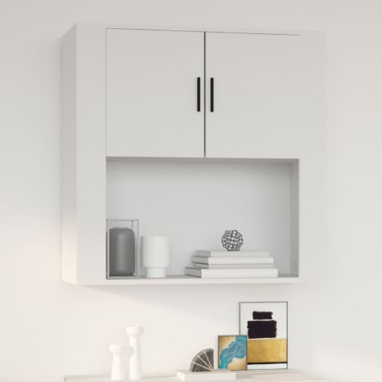 Sarnia Wooden Wall Storage Cabinet With 2 Doors In White, This practical and decorative hanging wall cabinet introduces an air of unique charm to your existing interior. FEATURES : Material : Engineered Wood Finish : White The engineered wood is of exceptional quality with smooth surface and also features strength, stability and resistance to moisture Made of engineered wood, this hanging cabinet is easy to clean This wall-mounted cabinet offers sufficient space to keep things organised The side cabinet can be wall-mounted to add extra storage space That way, you can maximise your floor space and keep the area clean You can also put it on the top of a sideboard to make a highboard, creating extra storage space In order to prevent overturning, this product must be used with the wall attachment device provided Screw and plug for inside the wall are not included Seek and use screw and plug suitable for your walls If you are uncertain, seek professional advice Read and follow each step of the instruction carefully Each product comes with an assembly manual in the box for easy assembly Available at an affordable price Images shown are for illustration purpose only DIMENSIONS : Height : 80cm Width : 80cm Depth : 30cm