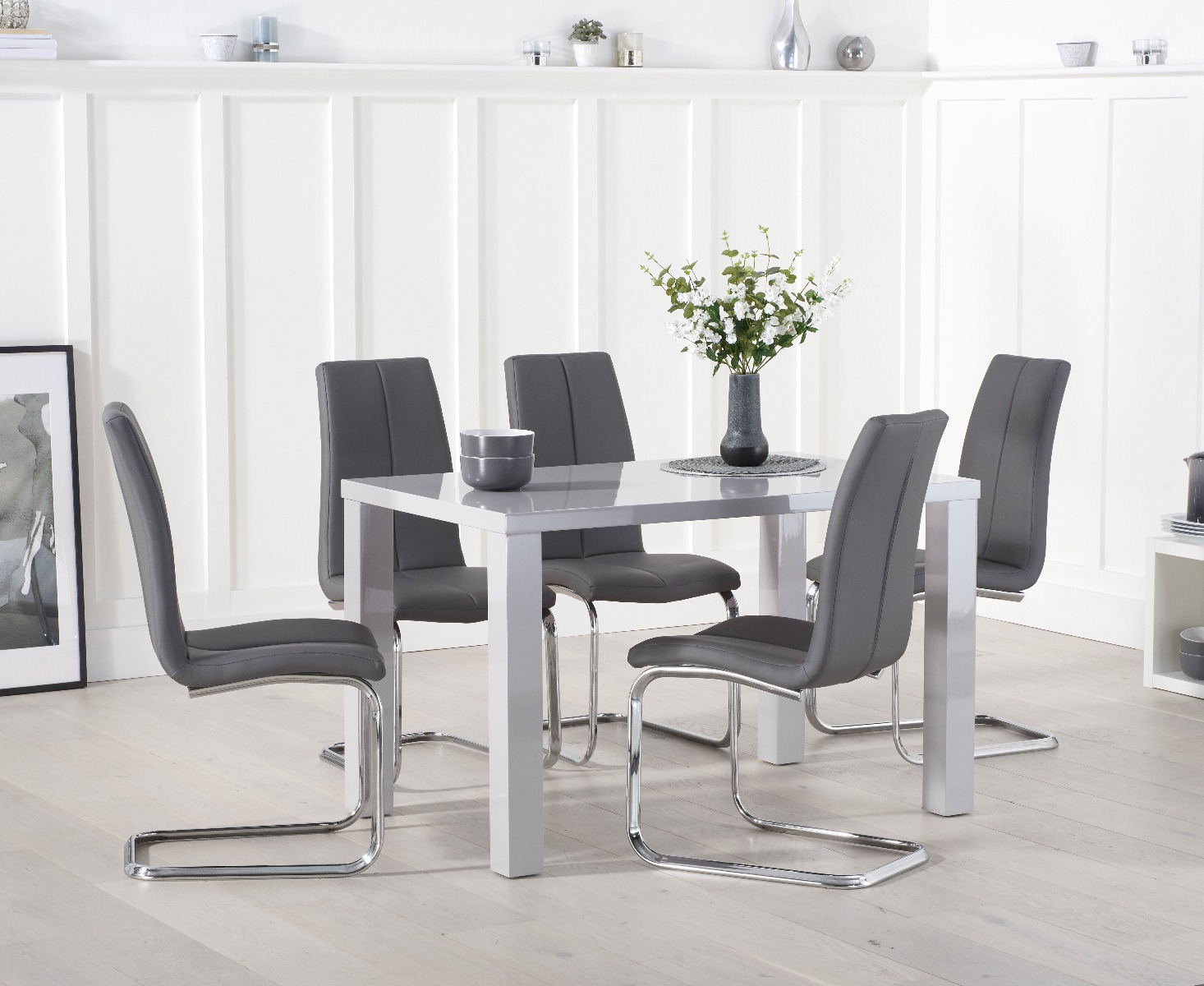 Seattle 120cm Light Grey High Gloss Dining Table With 4 Grey Gianni Chairs