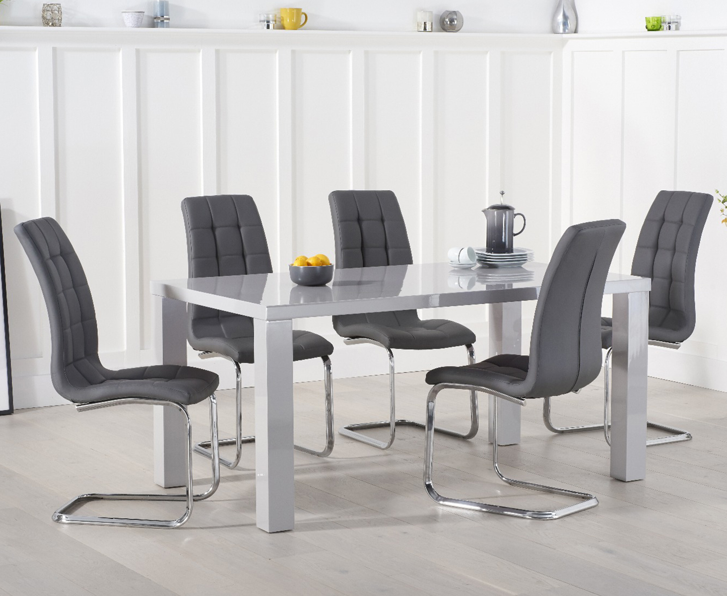 Our review of the Seattle 160cm Light Grey High Gloss Dining Table With 6 Grey Vigo Chairs