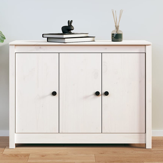 Secia Pinewood Sideboard With 3 Doors In White, This practical wooden sideboard is meant to satisfy your various requirements and is an ideal addition to your room. FEATURES : Material : Solid Pine Wood (Untreated) Finish : White Solid pine wood is a beautiful White material Pine wood has a straight grain, and the knots give the material its signature, rustic look This sideboard cabinet is made of solid wood for extra stability The storage cabinet provides enough space for you to keep things organised and within easy reach You can also place your favourite photos, decorations or flowers on top of the cupboard to enrich your room This minimalist side cabinet can be used in a variety of rooms You can use it in office or study to organise documents and books, or in your living room or bedroom to store household items In order to prevent overturning, this product must be used with the wall attachment device provided Each product comes with an assembly manual in the box for easy assembly Available at an affordable price Images shown are for illustration purpose only DIMENSIONS : Height : 74cm Width : 100cm Depth : 35cm