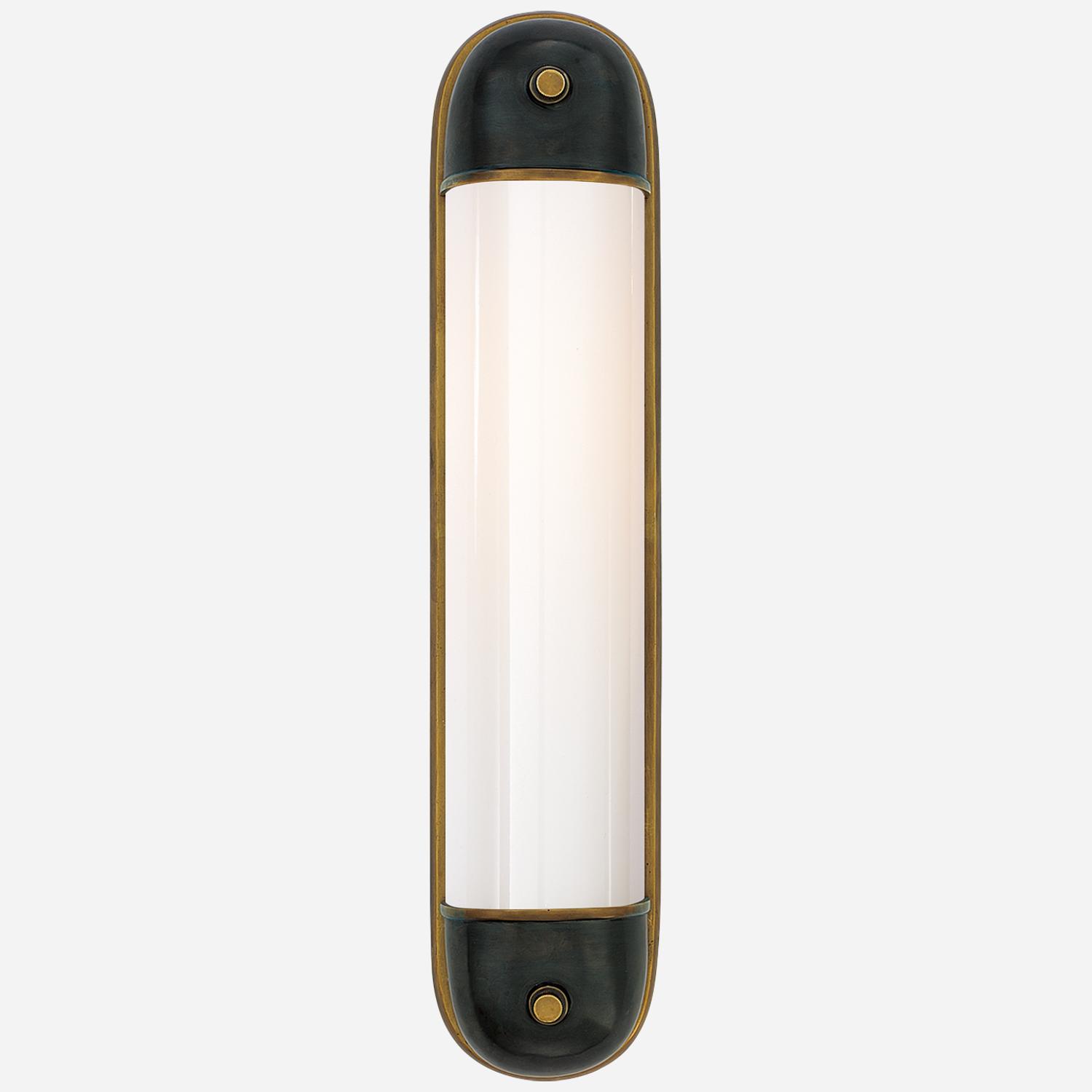 Designed by Thomas O'Brien, the Selecta Long Sconce is the perfect choice for lighting a bathroom vanity that works just as well accenting a stairway. Selecta Wall Light Bronze & Brass, Wall Light, Bronze/Antique Brass - Andrew Martin