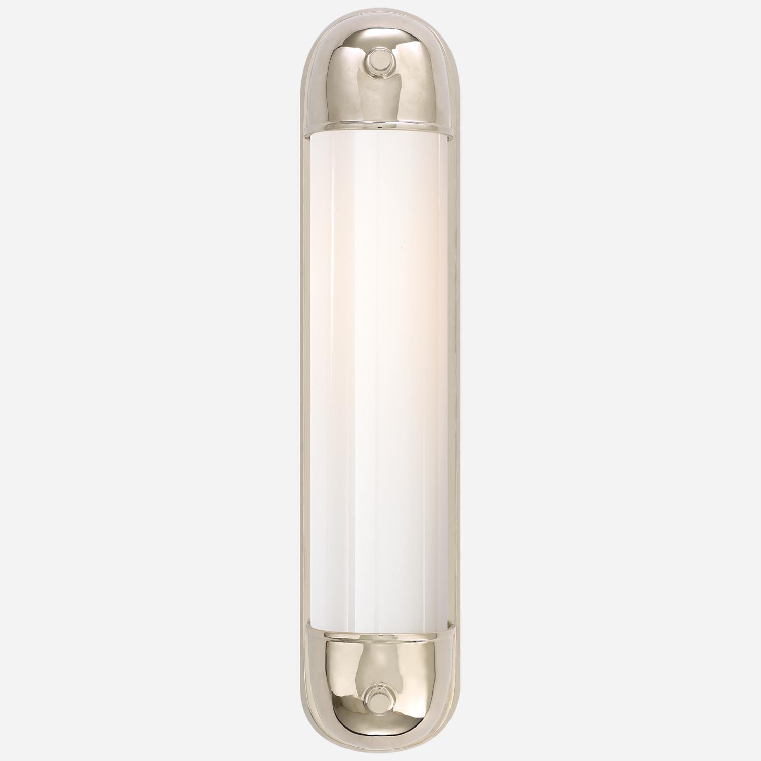 Designed by Thomas O'Brien, the Selecta Long Sconce is the perfect choice for lighting a bathroom vanity that works just as well accenting a stairway. Selecta Wall Light Nickel, Wall Light, Polished Nickel - Andrew Martin