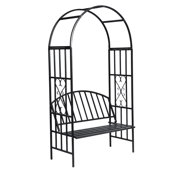 Skylar Metal Garden Seating Bench With Rose Arch In Black