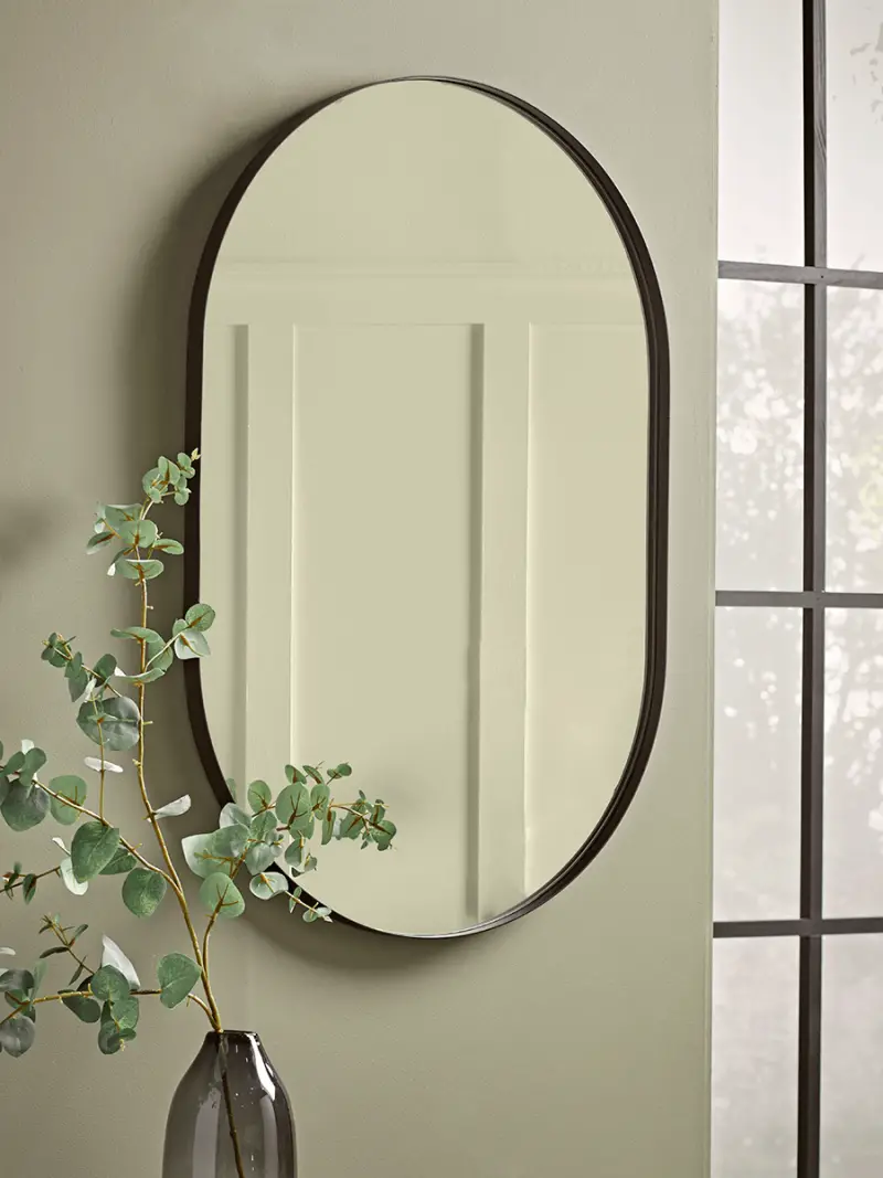With a beautifully simple, slender frame in chic black and the mirrored surface set slightly back, our Slim Frame Oval Mirror is wonderfully versatile and will add a little minimalist elegance to your home. Position above a mantelpiece, console table or bed to add light and grace to your interior.