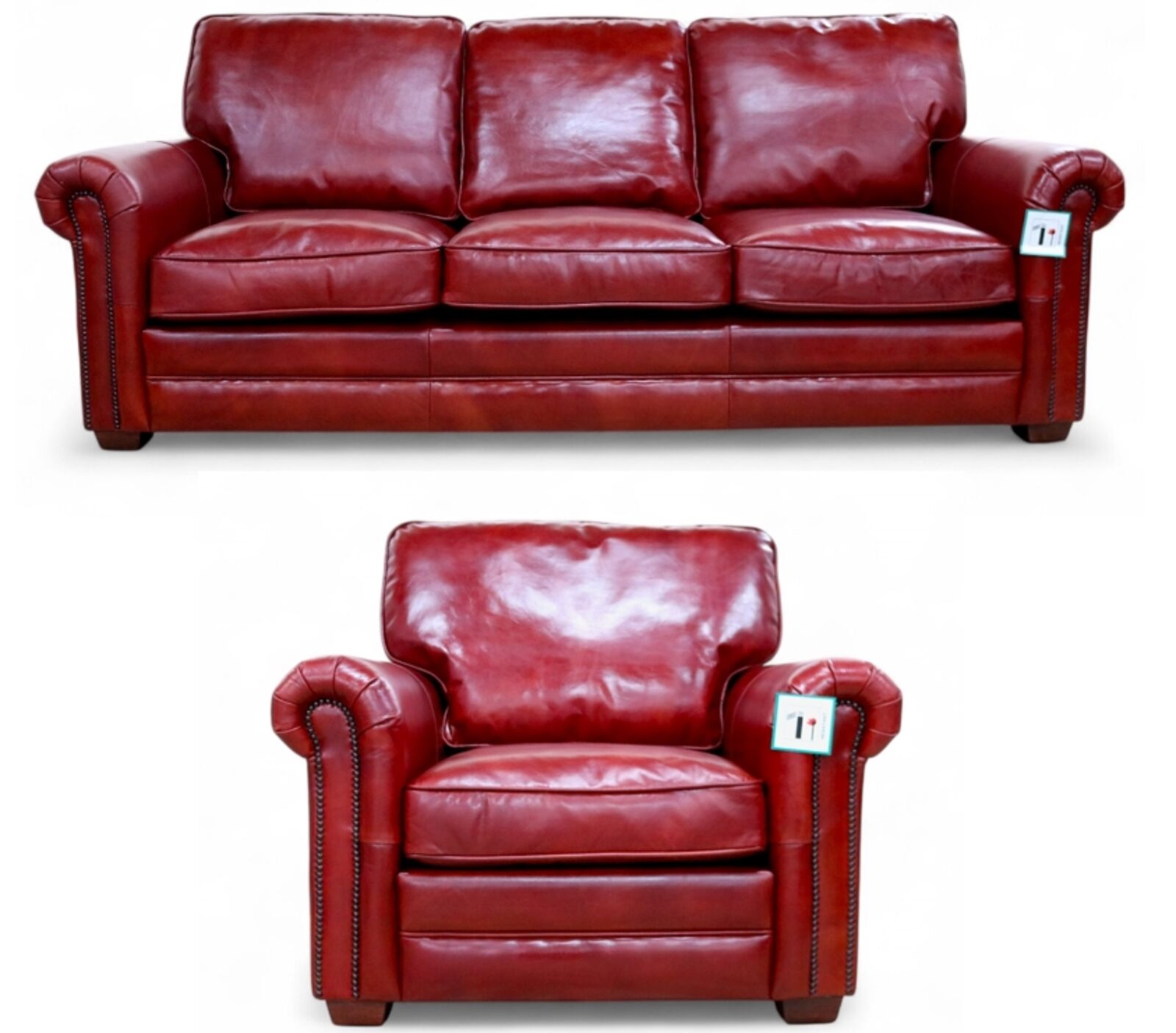Bring timeless elegance and comfort into your home with this stunning vintage leather sofa. Upholstered in high-quality distressed leather, this sofa features deep seat cushions and plush backrests for ultimate relaxation. Its rolled arms and nailhead trim detail add a classic touch, making it perfect for both traditional and modern interiors. Features: Premium vintage distressed leather Deep, plush cushioning for added comfort Rolled arms with decorative nailhead trim Durable hardwood frame This sofa combines classic style with modern comfort. It's perfect for cozy family gatherings or as a statement piece in your living room or office. Dimensions (CM) 3 Seater W211 X D103 X H96 Apprx. Dimensions (CM) armchair L98 X W103 X H96 Apprx. What is Vintage Distressed Leather? The Vintage Distressed Leather Collection is meticulously crafted, perfectly preserves every inch of natural ageing marks, revealing not only the story of time but also the unique classic charm. Each piece is…