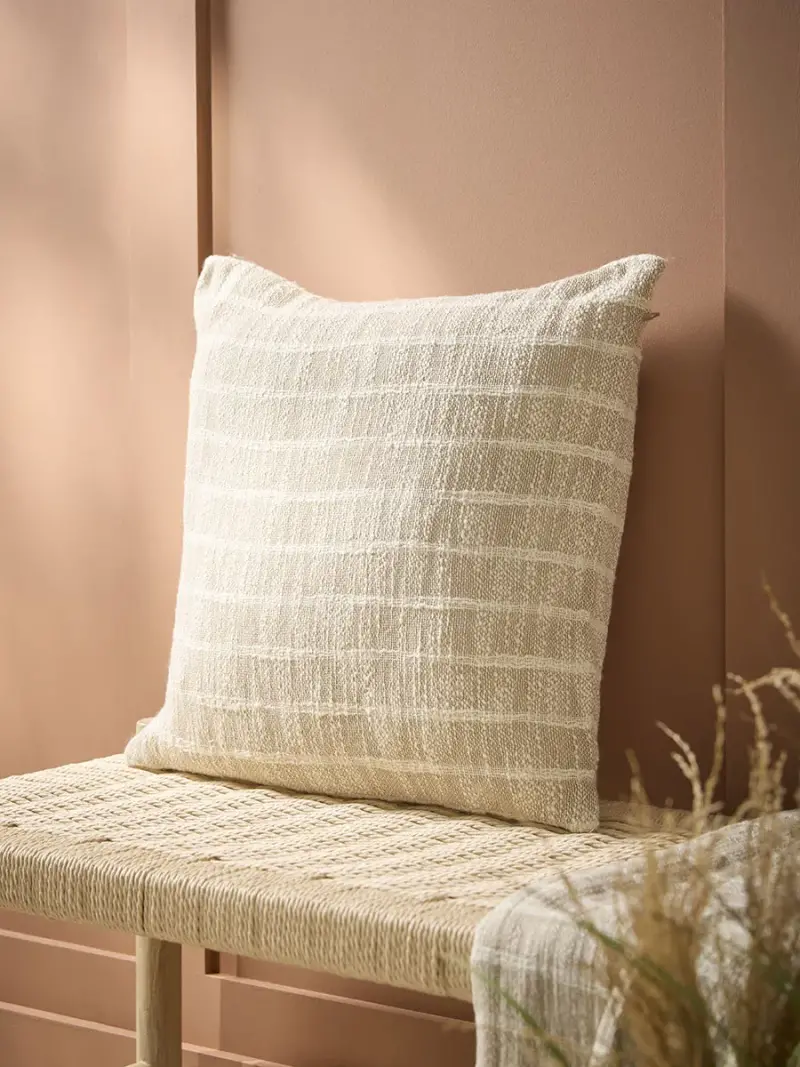 This beautifully crafted cushion offers a touch of understated elegance for your living space.With its subtle woven texture and soft, neutral tone, it's the perfect addition to any room looking to embrace a natural, serene feeling. Featuring a delicate striped pattern that adds depth and warmth, without overwhelming the space, this cushion works wonderfully nestled on a sofa or perched on an armchair, inviting relaxation and calm to your home.